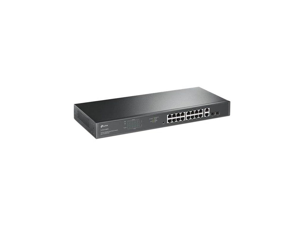 18-Port Gigabit Easy Smart Switch with 16-Port PoE+ PORT: 16× Gigabit PoE+ Ports, 2× Gigabit Non-PoE Ports, 2× Combo Gig TL-SG1218MPE
