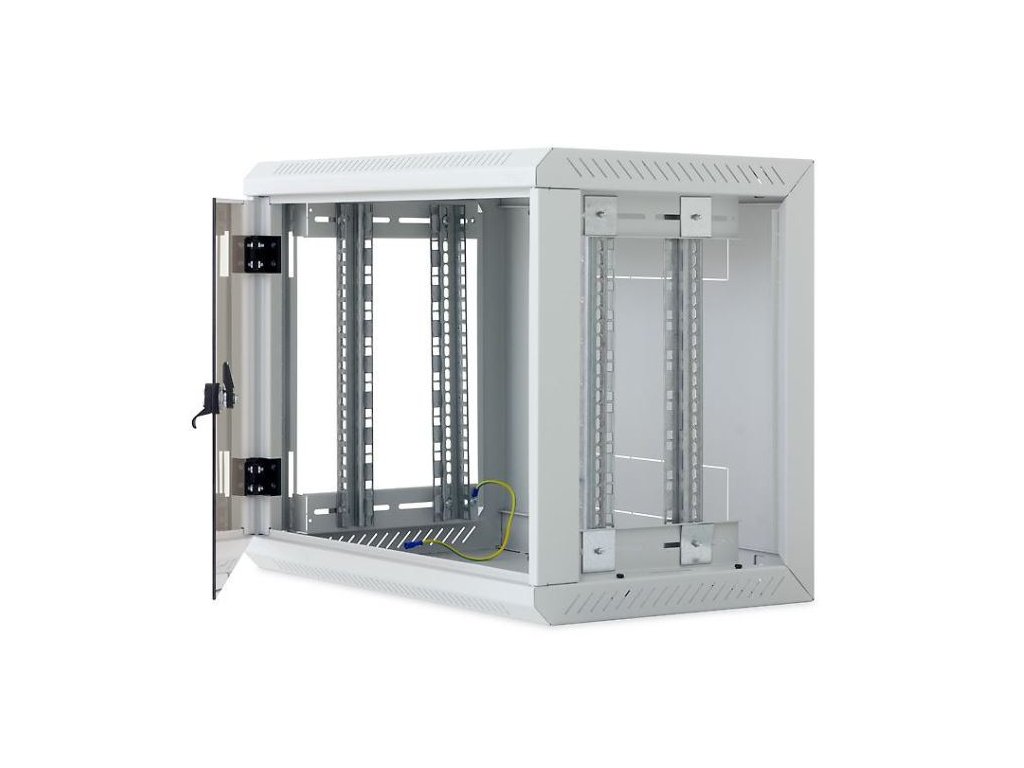 Dva páry 19" vertikálnych koľajníc sú plynule nastaviteľné v ľubovoľnej hĺbke stojana. To uľahčuje inštaláciu zariadenia a usporiadanie pripojovacích káblov.