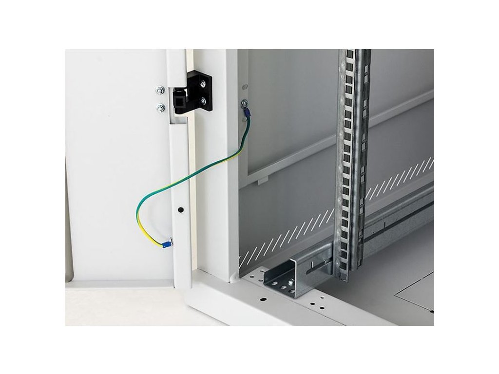19" vertikálne koľajnice možno plynule nastaviť v ľubovoľnej hĺbke stojana. To uľahčuje inštaláciu zariadenia a usporiadanie pripojovacích káblov.