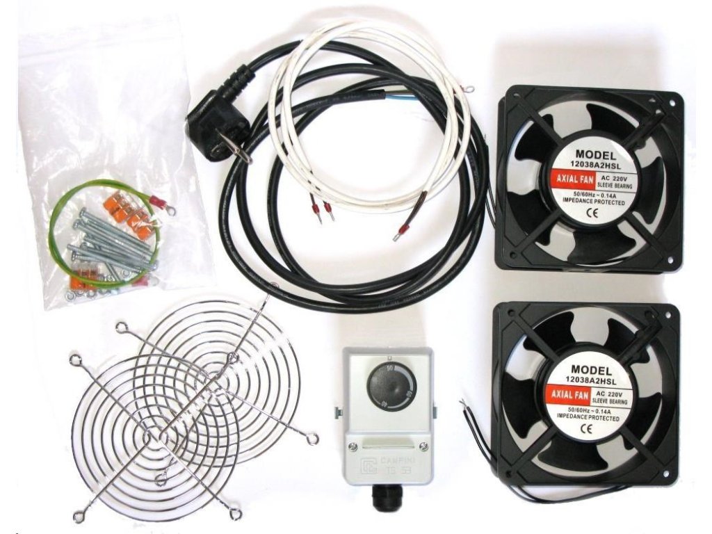 19" ventilácia pre nástenné rozvádzače XtendLan, termostat, 2 ventilátory 120mm, napájací kábel, spojovací materiál