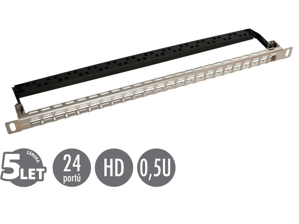 19'' modulárny neosadený high-density patch panel Solarix 24 portov 0,5U SX24HDM-0-STP-SL-UNI 24200244