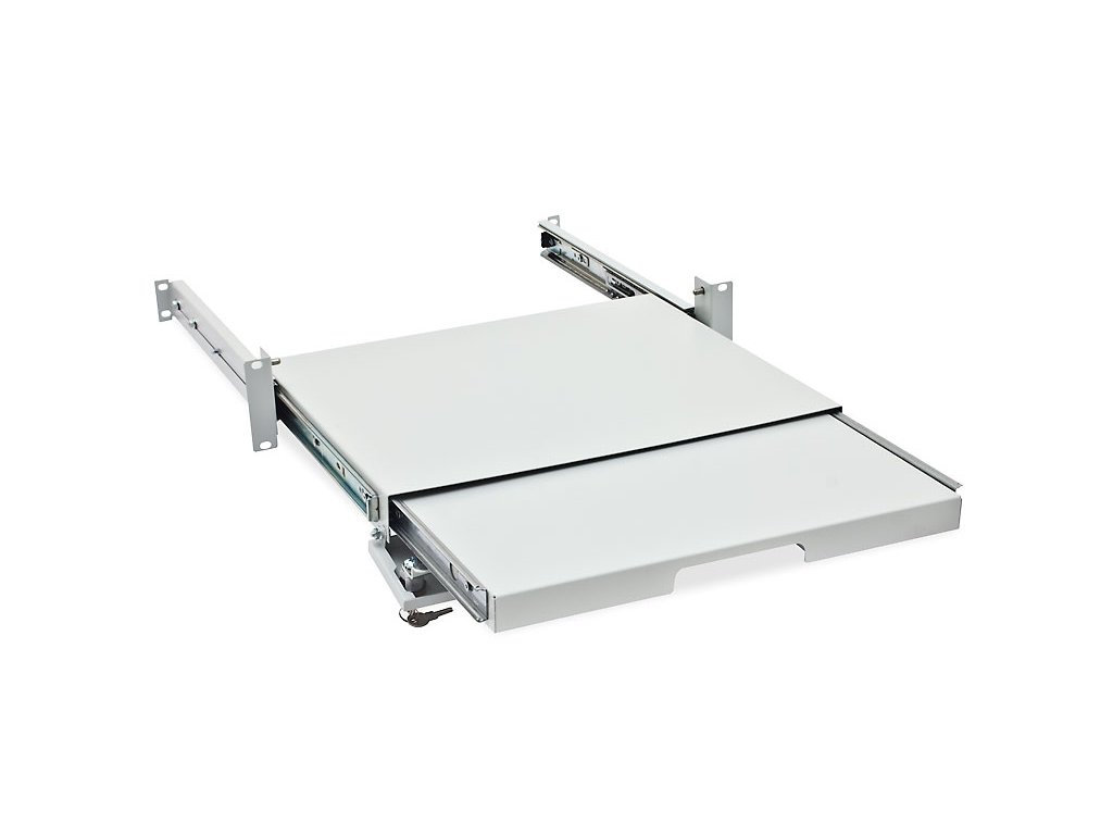Triton, RAB-UP-X29-A1 Výsuvná uzamykatelná 19´´ police 2U pro klávesnici a myš, uzamykatelná, hloubka zasunuté police je 371,5 mm Příbal: montážní materiálbarva: černáilustrační obrázekDodatočné parametre