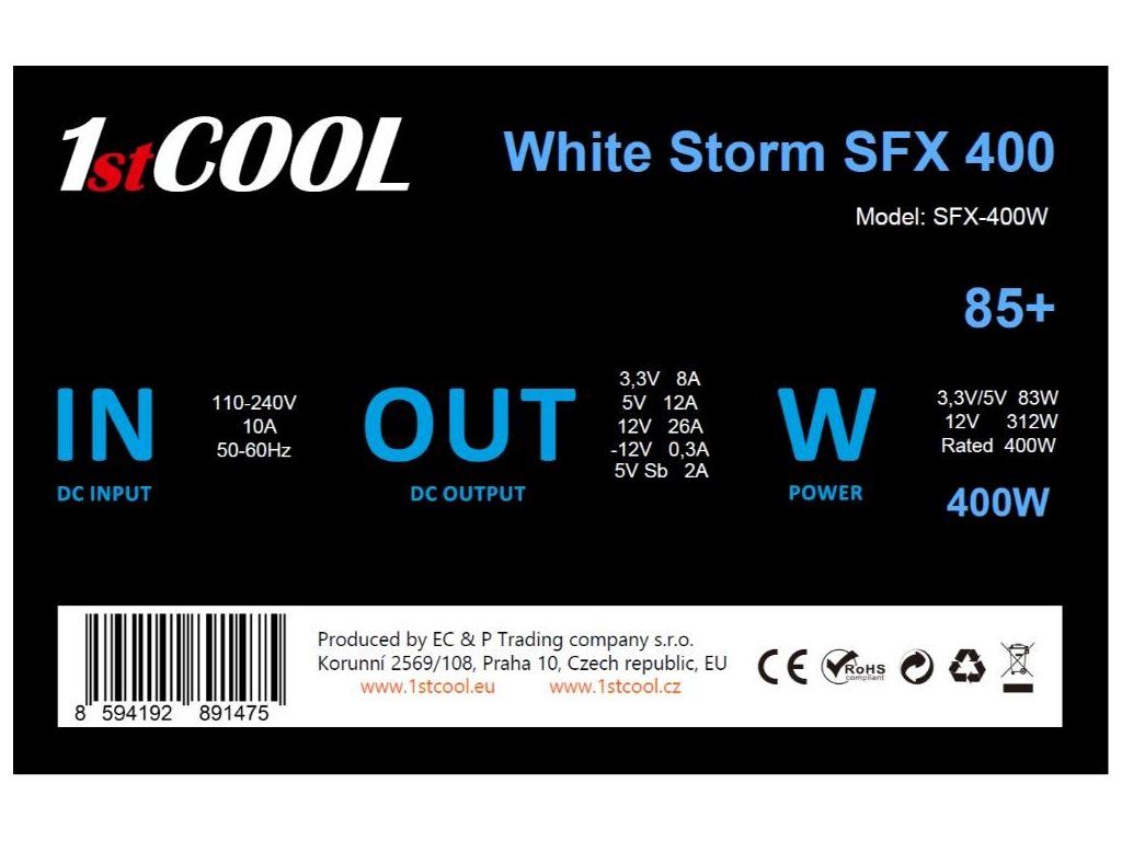 1stCOOL Zdroj White Storm SFX 400 85+, 400W, SFX, černá SFX-400W