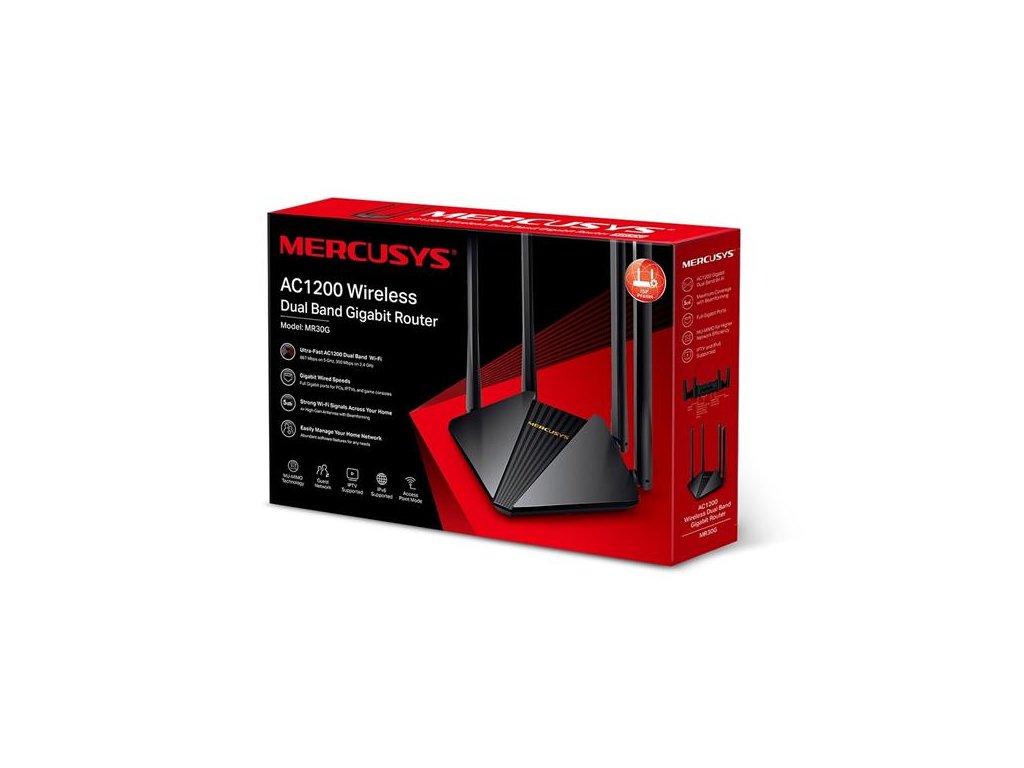AC1200 Dual-Band Wi-Fi Gigabit Router SPEED: 300 Mbps at 2.4 GHz + 867 Mbps at 5 GHz SPEC: 4× Fixed External Antennas, MR30G