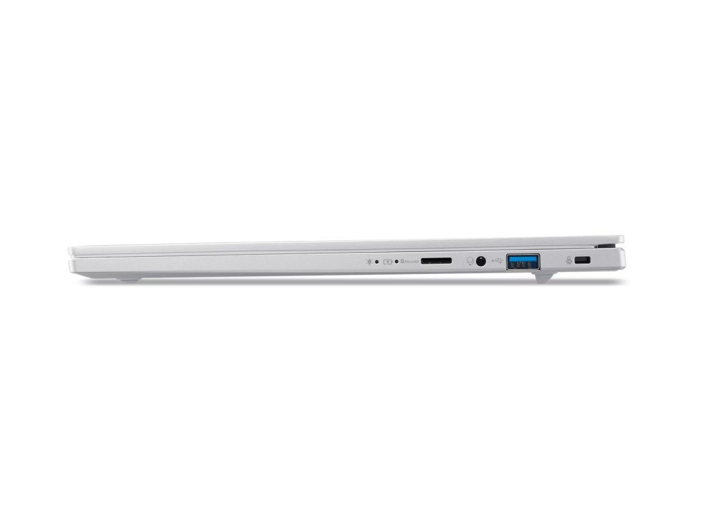 Acer Aspire 14 AI (A14-53M-56LA) Copilot+ PC * Acer Sense Operační systém: Windows 11 Home Procesor: Intel Core Ultra 5 226V (8 jader - 4P + 4LPE, 8 vláken, P-core 2,1/4,5 GHz, LPE-core 2,1/3,5 GHz, 8 MB cache) NPU: NPU Intel® AI Boost, až 40 TOPS Paměť: 16GB LPDDR5X na desce Pevný disk: 1024GB PCIe NVMe SSD PM4 Optická mechanika: ne Čtečka paměťových karet: microSD Displej: 14'' WUXGA (1920x1200) 16:10 lesklý OLED, 450 nitů, DCI-P3 100%/Adobe100%, podpora HDR True black 500, TÜV Low blue/Eyesafe Grafická karta: Integrovaná Intel Arc/Intel Graphics Audio: 2x reproduktor, 2x mikrofon Web kamera: FHD IR USB TNR Polohovací zařízení: Touchpad Podsvícená klávesnice: ano (bíle) Numerická klávesnice: ne Čtečka otisku prstů: ne Síť: ne Bezdrátová komunikace: WLAN + Bluetooth (Wifi 7 802.11be 2x2 MU-MIMO + BT 5.4 LE Audio) Porty USB: * 2x USB-C™: USB4® 40Gb/s/Thunderbolt™ 4 (podpora DisplayPort přes USB-C/USB nabíjení 5V, 3A/DC-in port 20V, 100W s podporou USB-C napájení) * 2x USB 3.2 Gen1 Další porty: * 1x kombinovaný konektor pro sluchátka/mikrofon (3,5mm) * 1x HDMI 2.1 * 1x bezpečnostní slot Kensington Baterie: 65Wh Li-ion Napájení: 65W USB-C Barva: Pure Silver Rozměry: 312x225,9x15,9mm Záruka: 2 rokyDodatočné parametre
