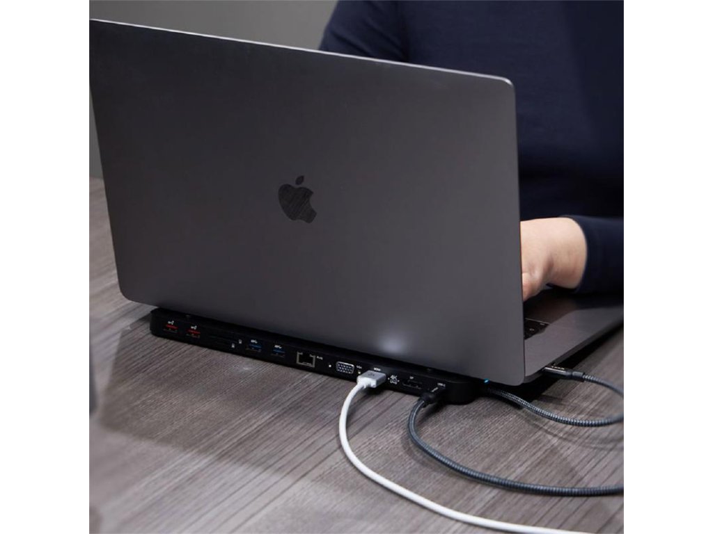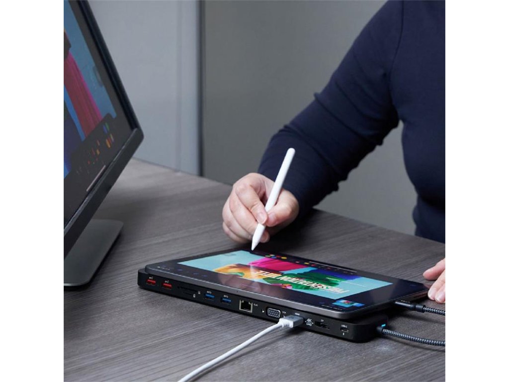 Rozširovací HUB 13-v-1 - rozšírte možnosti vášho zariadenia o nové periférie - konsolidovaný prenos dát, rozšírenie obrazu či súčasné čítanie kariet - spevnený konektor a pletený kábel pre vyššiu odolnosť a životnosť - poskytuje rýchlosť prenosu dát 10 Gb/s a výkon nabíjania až 100W - rozširuje alebo zrkadlí obrazovku až na 3 rôznych displejoch - podpora HDCP 2.2 pre streamovanie so 4K ultravysokým rozlíšením videa - čítačky kariet je možné používať súčasne - pripojenie pomocou USB-C kábla s dĺžkou 0,2 metra - kompatibilné s M1 MacBook Pro 2021 a iPad Pro 2021 Porty: 1x USB-C 3.0 PD: 100W (Pass-Through nabíjanie) 1x USB-C 3.1 Gen2: 10Gb/s 2x USB-A 3.1 Gen2: 10Gb/s 2x USB-A 3.1 Gen1: 5Gb/s 1x VGA: 1080p@60Hz 1x HDMI 2.0: 4K@60Hz 1x DisplayPort 1.4: 4K@60Hz 1x čítačka SD kariet 4.0: SD / SDHC / SDXC, 312 MB/s 1x čítačka microSD kariet 4.0: microSD / microSDHC / microSDXC, 312 MB/s 1x Gigabit Ethernet: RJ45 802.3 1x audio 3,5mm Jack Rozmery: 280 x 55 x 18 mm Hmotnosť: 235 gBuďte prvý, kto napíše príspevok k tejto položke.