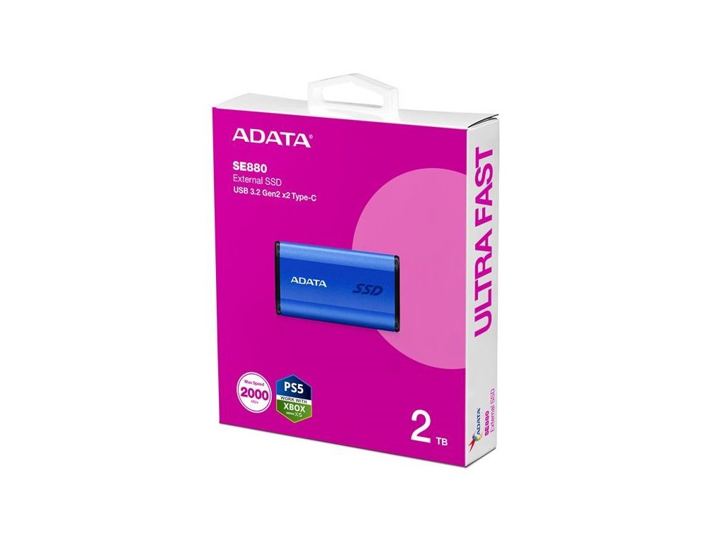 ADATA Externí SSD 2TB SE880, USB-C 3.2 Gen 2x2, R:2000/W:2000MB/s, modrá AELI-SE880-2TCBU