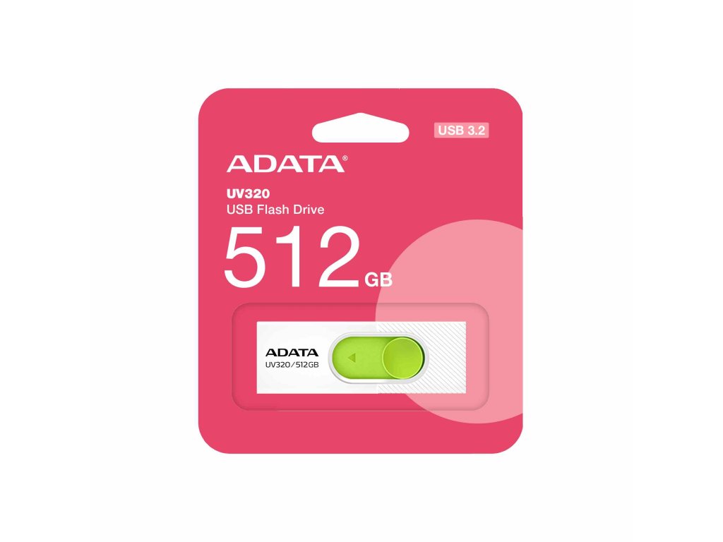 ADATA Flash Disk 512GB UV320, USB 3.2, bílo-zelená AUV320-512G-RWHGN