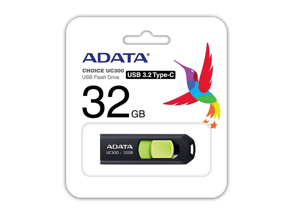 ADATA USB Flash Drive UC300 Rozhraní: USB 3.2 Gen1 s rychlostí 5Gb/s - typ C Kapacita: 32 GB Velikost: 63 x 20 x 10mm Barva: černá + zelenáDodatočné parametre