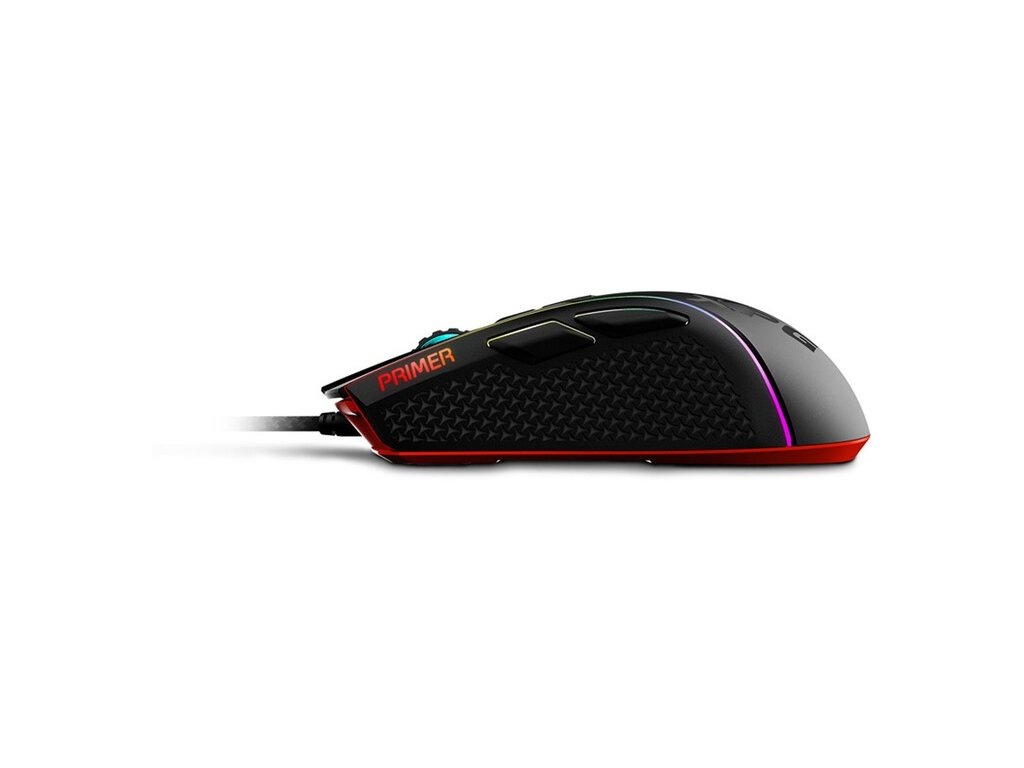 Herní myš XPG PRIMER je určena jak pro zkušené hráče, kteří preferují jednoduchou stylovou myš, tak pro začátečníky, kteří si chtějí zvýšit svoji zdatnost. Je vybavena spínači Omron o výdrži až 20 milionů kliknutí, optickým senzorem s rozlišením až 12 000 DPI a celou řadou designových vychytávek pro komfort, přesnost, výdrž a styl. Herní myš XPG PRIMER je připravena do vaší hry! Herní myš XPG PRIMER je vybavena texturovanými bočními úchopy s protiskluzovými vlastnostmi pro vynikající trakci a pohodlné hraní. Klíčové vlastnosti *Odolný povrch s dvouvrstvým PBT *Vyvážená hmotnost - 98 g *Texturované boční úchopy komfort při dlouhém hraní *Velmi lehký opletený kabel *Výběr světelných efektů RGB *Optický senzor 12000 DPI PMW3360 *Mechanické spínače Omron s výdrží 20 milionů kliknutí *Hmatové posuvné kolečko pro lepší ovládání Technické parametry *Rozhraní: USB typ A *Spínač: Omron s výdrží 20 milionů kliknutí *Rozlišení: 400/800/1600/3200/6400/12000 dpi *Rozměry: 126 x 65,6 x 37,9 mm *Hmotnost: 98 g *Max. zrychlení: 50G *Frekvence zpětné vazby: 250/500/1000 Hz *Světelný efekt: Barevná vlna, Pulzování, Statické, Vypnuto *Délka kabelu: 1,8mDodatočné parametre