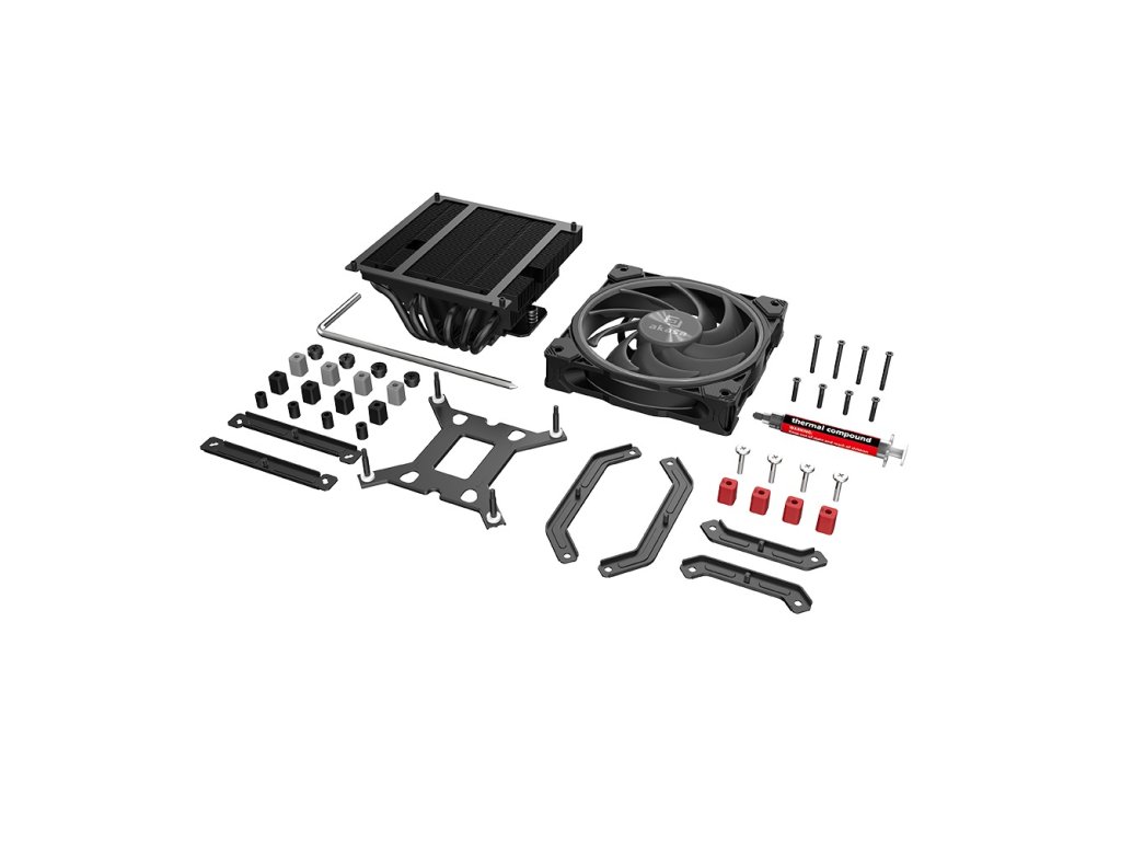 Akasa SOHO H6L M2 černý nízkoprofilový chladič CPU s aRGB podsvícením * 120mm aRGB ventilátor s pokročilým srpkovitým designem lopatek * výška 77,6 mm * optimalizovaný pro počítače SFF TDP: 160W Počet ventilátorů: 1 (120x120x26,5mm) Rychlost ventilátoru: 500-2000 ot./min Maximální průtok vzduchu: 52,91CFM Maximální tlak vzduchu: 1,75mm-H20 Hlučnost: 14,2–31,8dB(A) Jmenovité napětí ventilátoru: DC 12V Jmenovité napětí LED: DC 5V Konektor ventilátoru: 4pinový PWM Konektor LED: 3pinový adresovatelný RGB Materiál: černá hliníková žebra s měděnými trubicemi Rozměry chladiče: 120×120×77,6mm Hmotnost: 565g Kompatibilní RGB software: ASUS®, ASRock®, GIGABYTE™ RGB Fusion, MSI® a Razer Chroma™ Kompatibilita: * Intel: LGA115x, LGA1200, LGA1700, LGA1851 * AMD: AM5, AM4 Záruka: 2 roky Odkaz na stránky výrobce: https://akasa.co.uk/products/AK-CC4035HP01Dodatočné parametre