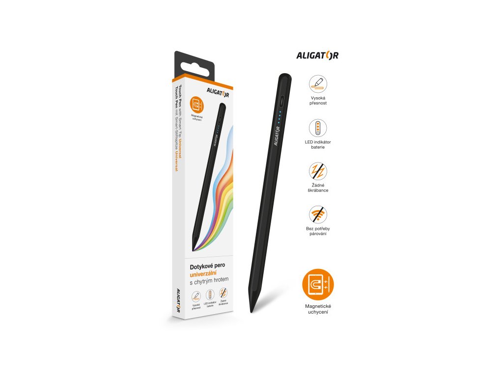 Aligator dotykové pero univerzální, černé Pracujte s dotykovým perem Aligator jako s klasickou tužkou. Díky přirozené odezvě, citlivosti chytrého hrotu na přítlak i náklon je Aligator dotykové pero naprosto nepostradatelným parťákem. Je navrženo pro práci jak v pravé ruce, tak i v levé. Speciální ergonomický tvar zajistí pohodlí a snižuje únavu ruky. Piště, kreslete, pracujte … užijte si každý jeden tah! Klíčové vlastnosti: *kompatibilní se systémem Android, iOS, iPadOS a Windows *chytrý hrot *vysoká přesnost dotyku s nulovou odezvou zpoždění *skryté magnetické uchycení - možnost přicvaknutí na kovovou základnu zařízení *funguje bez potřeby párování s tabletem či jiným zařízením *LED indikátor baterie *žádné škrábance *až 4 hodiny provozu na 1 nabití (nabíjení cca 40 minut) *USB-C konektor *náhradní hrot a nabíjecí kabel v balení Parametry: Funkce: *vysoká přesnost dotyku *vyměnitelný hrot *LED indikátor baterie Výdrž baterie na jedno nabití: až 4h Doba nabíjení baterie: cca 40min (USB-C konektor) Kompatibilita: kompatibilní se systémem Android, iOS, iPadOS a Windows Výrobce: Aligator Barva: černá Obsah balení: *dotykové pero *náhradní hrot *nabíjecí kabel (USB-C) *stručný návod k obsluze Záruka: 24 měs.Dodatočné parametre