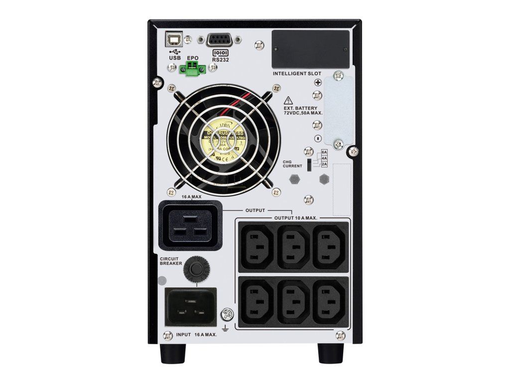 APC Easy UPS On-Line SRV 3000VA 230V. Vysoce kvalitní online UPS s dvojitou konverzí a možností připojení externí baterie pro delší dobu zálohování. VÝSTUP Kapacita výstupního výkonu [W]: 2700 Kapacita výstupního výkonu [VA]: 3000 Jmenovité výstupní napětí [V]: 230 Topologie: Online s dvojí konverzí Typ křivky: Sinusoida Výstupní kmitočet [Hz]: 50/60 ±3 Hz (synchronní se sítí) Typ připojení výstupu: 6 IEC 60320 C13, 1 IEC 60320 C19 VSTUP Jmenovité vstupní napětí [V]: 230 Typ připojení vstupu: IEC 60320 C20 Kmitočet na vstupu [Hz]: 40 - 70 Hz (autodetekce) Rozsah vstupního napětí pro napájení z rozvodné sítě [V]: 180 - 285 (plná zátěž), 105 - 300 (40 % zátěž) BATERIE A DOBA BĚHU Typ baterie: Olověná baterie Napětí baterie [V]: 72 Obvyklá doba nabíjení [Hod]: 5,5 Očekávaná životnost baterie: 3 - 5 let KOMUNIKACE A SPRÁVA Zvukové upozornění: Upozornění při napájení z baterie, nízké kapacitě baterie, přetížení nepřerušovaným tónem Funkce zvukového upozornění: Multifunkční LCD, stavová a kontrolní konzole FYZICKÉ Maximální výška [cm]: 33,6 Maximální šířka [cm]: 42,5 Maximální hloubka [cm]: 42,5 Čistá hmotnost [kg]: 46,2 Barva: černá Zahrnuje: Napájecí kabely (C13–C14, C19–Schuko), USB kabel, RS-232 konfigurační kabel, externí bateriový modul, bateriový kabel, uživatelská příručka Záruka: 24 měsíců Odkaz na web výrobce: https://www.se.com/cz/cs/product/SRV3KIL-E/apc-easy-ups-online-3kva-2700w-tower-230v-6x-iec-c13-+-1x-iec-c19-outlets-intelligent-card-slot-lcd-extended-runtime/Dodatočné parametre