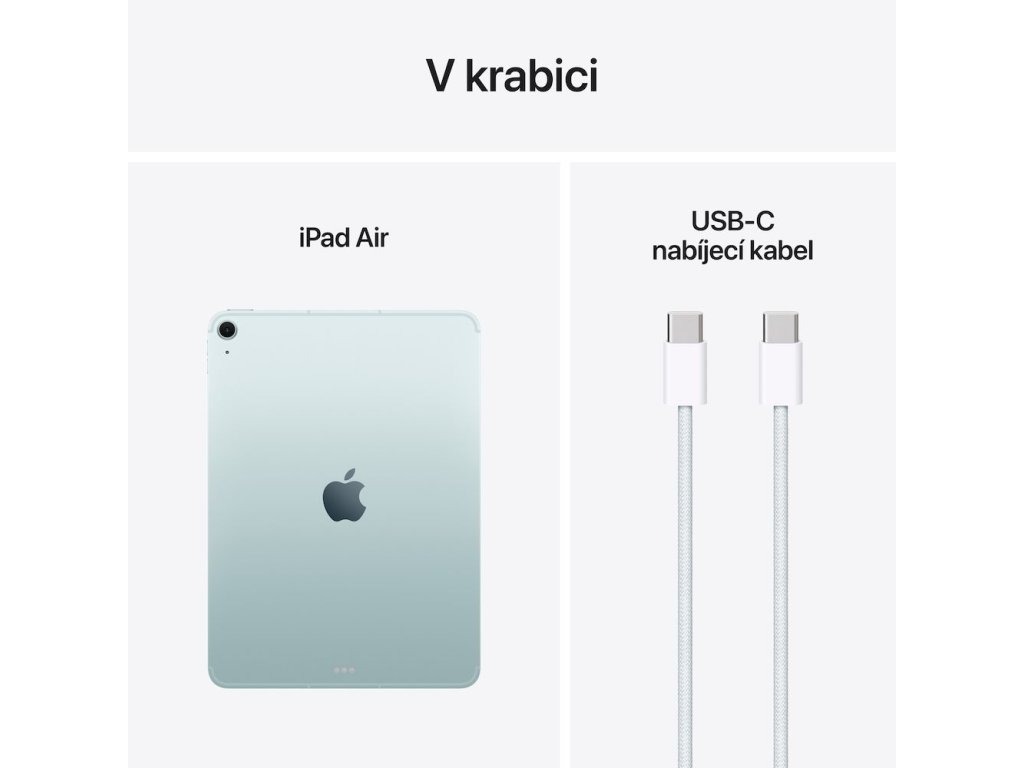 Apple iPad Air 11'' (M3) Wi-Fi + Cellular 1TB * Apple Intelligence Operační systém: iPadOS 18 Procesor: Apple M3, 8 jádrové CPU (4P+4E), 9 jádrové GPU, 16 jádrový Neural Engine Paměť: 8GB Pevný disk: 1TB Čtečka paměťových karet: ne Displej: 10,86'' Liquid Retina Multi-Touch displej s LED podsvícením a technologií IPS, 2360x1640 při 264ppi, 500 nitů, antireflexní, oleofobní úprava proti šmouhám, True Tone Audio: stereo reproduktory v orientaci na šířku, FaceTime audio, 2x mikrofon Fotoaparát zadní: * 12MP širokoúhlý, f/1,8, pětičlenný objektiv, až 5× digitální zoom, Smart HDR 4, sekvenční režim, HEIF a JPEG * 4K video při 24 fps, 25 fps, 30 fps nebo 60 fps, kontinuální autofokus při nahrávání videa, HEVC a H.264 Web kamera přední: * 12MP Center Stage na šířku, f/2,0, Smart HDR 4 * 1080p HD video při 25 fps, 30 fps nebo 60 fps, Retina Flash s True Tone, sekvenční režim, FaceTime Senzory: * Touch ID * tříosý gyroskop * akcelerometr * barometr * snímač okolního osvětlení Určování polohy: * digitální kompas * Wi-Fi * mikrolokalizace iBeacon * GPS/GNSS * mobilní data Bezdrátová komunikace: Wi-Fi 6E (802.11ax) s technologií 2×2 MIMO + Bluetooth 5.3 + 5G s technologií MIMO 4×4 Porty: * 1x USB-C (až 10 Gb/s), nabíjení, DisplayPort * 1x magnetický konektor * 1x smart konektor Baterie: vestavěná lithium-polymerová baterie s kapacitou 28,93Wh Výdrž baterie: až 10 hodin/až 9 hodin v mobilní datové síti Barva: modrá Rozměry: 247,6x178,5x6,1mm Hmotnost: 460g V krabici: * iPad Air * USB-C nabíjecí kabel (1m)Dodatočné parametre