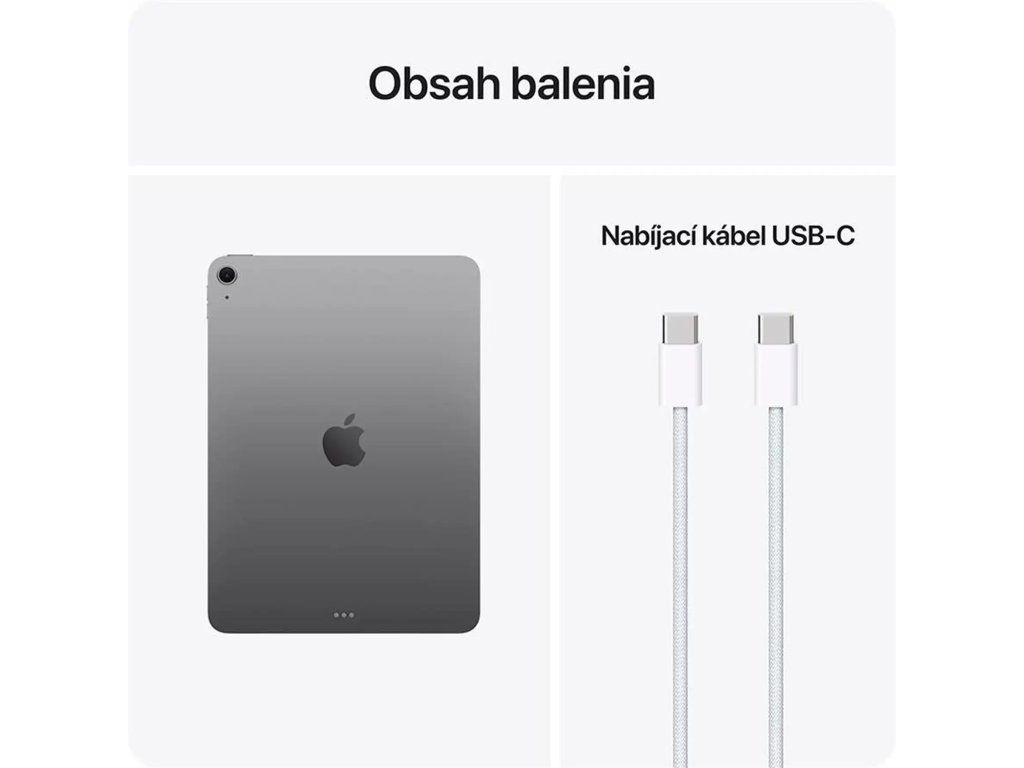 Apple iPad Air 11'' (M4) Wi-Fi ,1TB *Apple Intelligence Operační systém: iPadOS 26 Procesor: Apple M4, 8 jádrové CPU (3P+5E), 9 jádrové GPU, 16 jádrový Neural Engine Paměť: 12GB Pevný disk: 1TB Čtečka paměťových karet: ne Displej: 10,86'' Liquid Retina Multi-Touch displej s LED podsvícením a technologií IPS, 2360x1640 při 264ppi, 500 nitů, antireflexní, oleofobní úprava proti šmouhám, True Tone Audio: stereo reproduktory v orientaci na šířku, FaceTime audio, 2x mikrofon Zadní fotoaparát: *12MP širokoúhlý, f/1,8, pětičlenný objektiv, až 5× digitální zoom, Smart HDR 4, sekvenční režim, HEIF a JPEG *4K video při 24 fps, 25 fps, 30 fps nebo 60 fps, kontinuální autofokus při nahrávání videa, HEVC a H.264, časosběrné video se stabilizací Přední webkamera: *12MP Center Stage na šířku, f/2,0, Smart HDR 4 *1080p HD video při 25 fps, 30 fps nebo 60 fps, Retina Flash s True Tone, sekvenční režim, FaceTime Senzory: *Touch ID *tříosý gyroskop *akcelerometr *barometr *snímač okolního osvětlení Určování polohy: *digitální kompas *Wi-Fi *mikrolokalizace iBeacon Bezdrátová komunikace: Wi-Fi 7 (802.11be) s technologií 2×2 MIMO + Bluetooth 6 Porty: *1x USB-C (až 10 Gb/s), nabíjení, DisplayPort *1x magnetický konektor *1x smart konektor Baterie: vestavěná lithium-polymerová baterie s kapacitou 28,93Wh Výdrž baterie: až 10 hodin Barva: vesmírně šedá Rozměry: 247,6x178,5x6,1mm Hmotnost: 464g V krabici: *iPad Air *USB-C nabíjecí kabel (1m)Dodatočné parametre