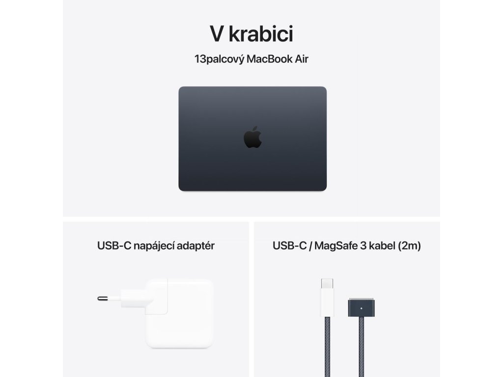 | Obsah balení: | MacBook Air, napájecí adaptér, USB-C/MagSafe 3 kabel, návod |
