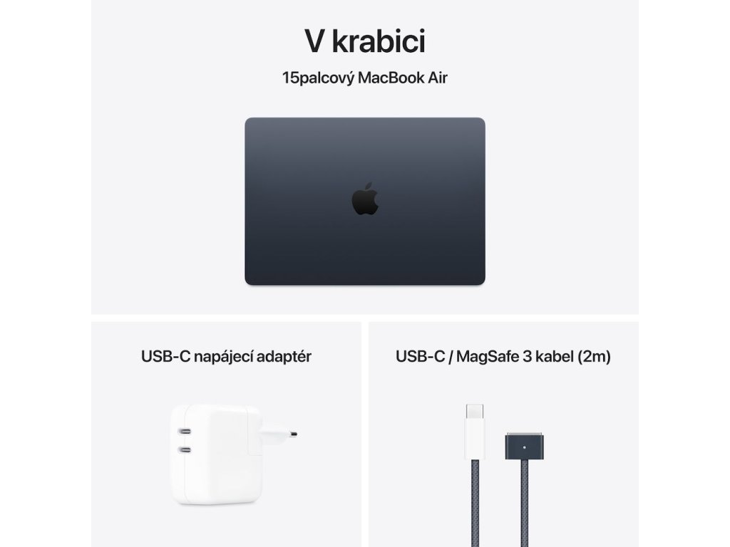 | Obsah balení: | MacBook Air, napájecí adaptér, USB-C/MagSafe 3 kabel, návod |