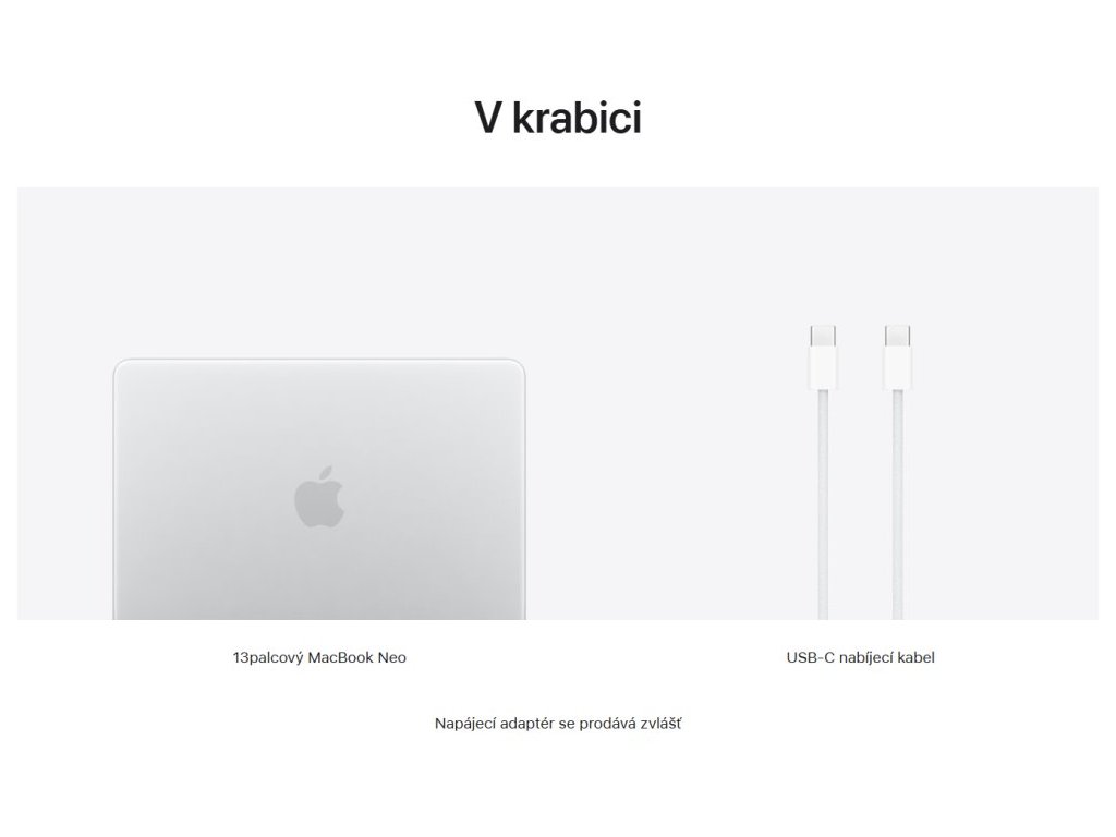 Apple MacBook Neo 13" (2026) / A18 Pro / 6C CPU / 5C GPU / 8GB RAM / 512GB SSD / Touch ID / Stříbrný MHFC4CZ/A