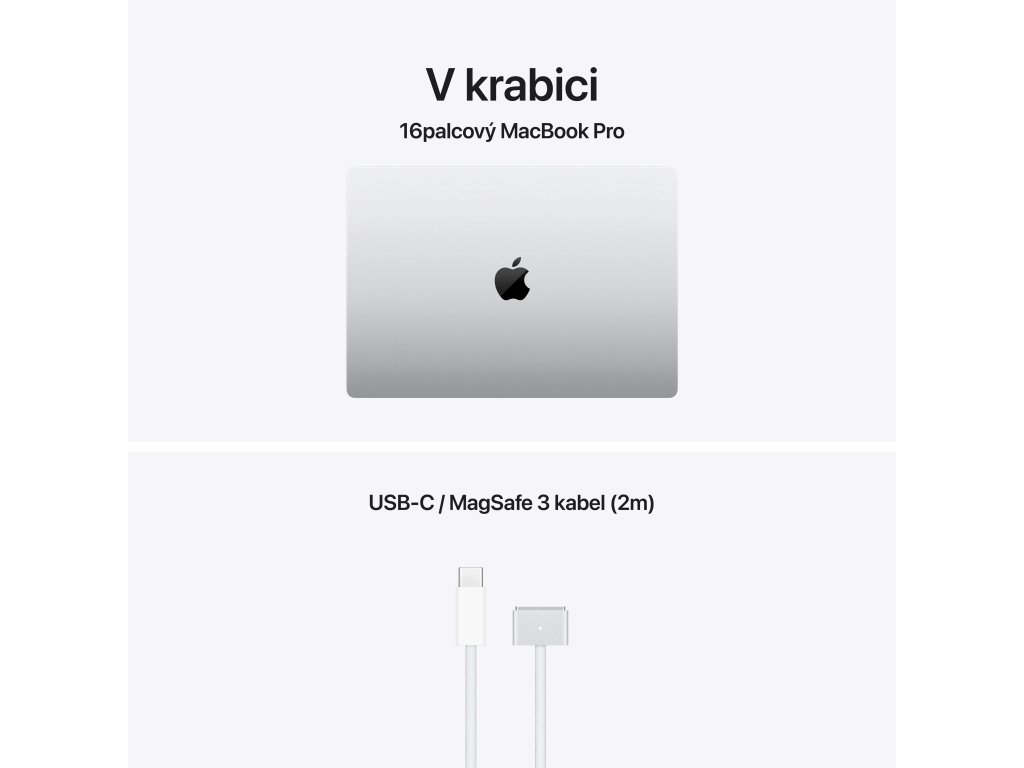 Apple MacBook Pro 16'' s čipem M5 Max *Apple Intelligence Operační systém: macOS Procesor: Apple M5 Max, 18jádrové CPU (6P+12E), 32jádrové GPU, 16jádrový Neural Engine, propustnost 460 GB/s Paměť: 36GB Pevný disk: 2TB SSD Optická mechanika: ne Čtečka paměťových karet: SDXC Displej: 16,2'' Liquid Retina XDR, 3456×2234 při 254 pixelech na palec, XDR až 1000 nitů, až 120Hz, True Tone Audio: Hi-fi zvuková soustava šesti reproduktorů s woofery v antirezonančním uspořádání, Dolby Atmos, soustava tří mikrofonů Webkamera: 12MP Center Stage, 1080p HD video, obrazový signálový procesor s výpočetním videem Polohovací zařízení: Force Touch trackpad Podsvícená klávesnice: ano, snímač okolního osvětlení Layout klávesnice: SK Numerická klávesnice: ne Čtečka otisků prstů: Touch ID Síť: ne Bezdrátová komunikace: Wi-Fi 7 (802.11be) + Bluetooth 6.0 Porty USB: *3× Thunderbolt 5 (nabíjení, DisplayPort, Thunderbolt 5: až 120 Gb/s, USB 4: až 120 Gb/s) Ostatní porty: *1× MagSafe 3 *1× 3,5mm sluchátkový konektor *1× HDMI *1× slot pro SDXC kartu Baterie: 100Wh lithium-polymerová Výdrž baterie: až 16 hodin bezdrátového prohlížení webu Napájení: napájecí adaptér se prodává zvlášť (minimální příkon potřebný k nabíjení zařízení je 140 W) Barva: stříbrná Rozměry: 355,7×248,1×16,8mm Hmotnost: 2,15kg V krabici: *16'' MacBook Pro *kabel USB-C/MagSafe 3 (2m) *slovenský ,návodDodatočné parametre