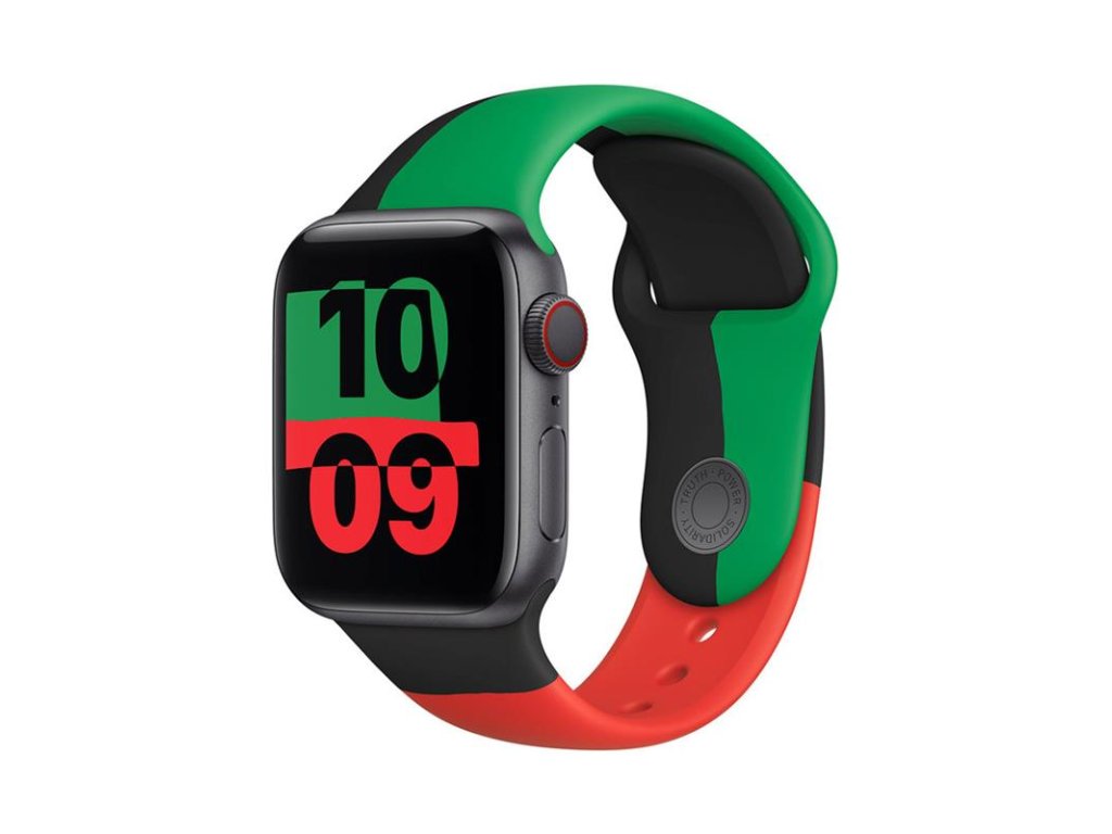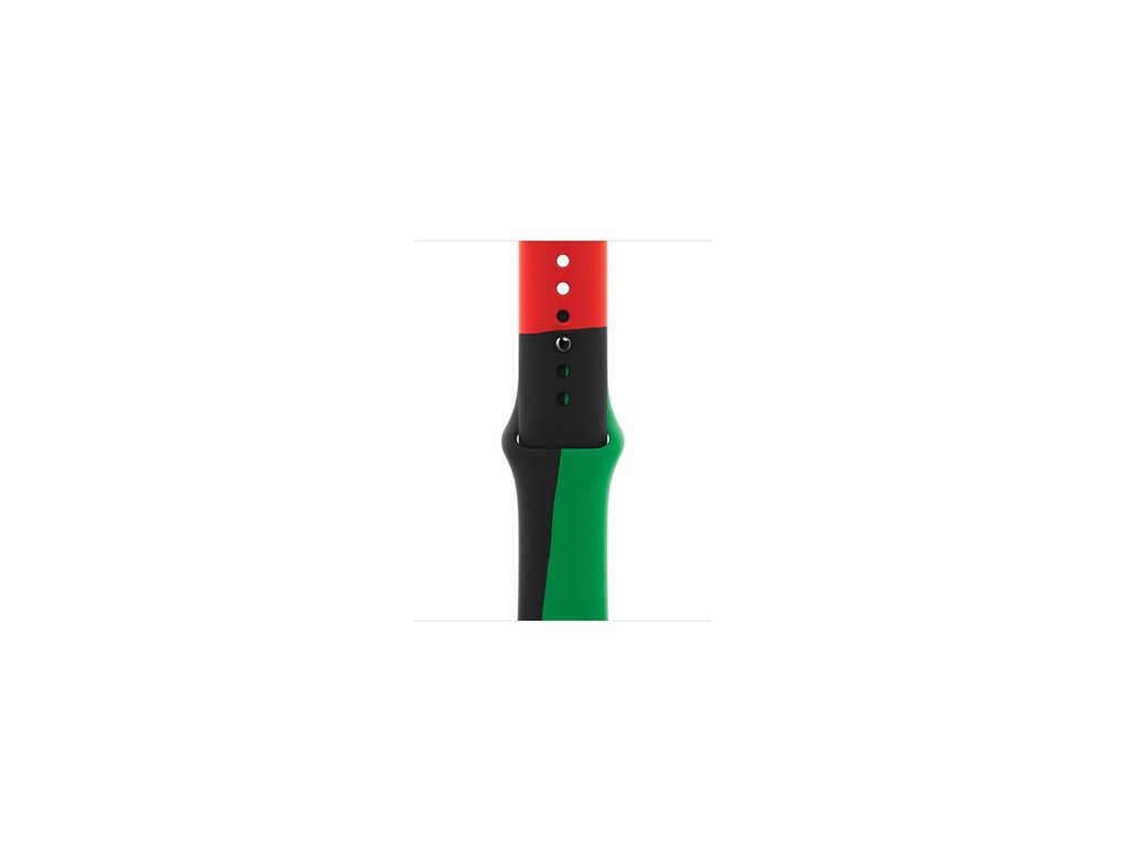 Športový remienok pre Apple Watch 40/38mm Športový remienok Black Unity je inšpirovaný Panafrickou vlajkou, symbolom jednoty a spolupatričnosti africkej diaspóry. Vlajka vyjadruje trvalé obete celých generácií mužov a žien, ktorých vízia spravodlivejšieho sveta definuje naše odhodlanie prekonávať výzvy a pretrvávajúce nedôstojné zaobchádzanie. Športový remienok zo špeciálneho vysoko funkčného fluóroelastoméru je odolný a pritom prekvapivo mäkký. Má zapínací kolíček, na ktorom sú laserom vygravírovaná heslá "Truth. Power. Solidarity." (Pravda. Moc. Solidarita.) - športový remienok z vysoko trvácneho fluóroelastoméru je odolný a pevný, a predsa prekvapivo jemný - symbolický dizajn inšpirovaný panafrickou vlajkou - Applepodporuje organizácie, ktoré sa starajú o rasovú rovnoprávnosť a spravodlivosť - jedinečné laserové gravírovanie - špeciálny ciferník Unity ladí s remienkom - hladký a hustý materiál elegantne prilieha k zápästiu a pôsobí príjemne na pokožku, s ktorou je v kontakte - inovatívna pracka elegantne zachytáva koniec popruhu náramku. Veľkosť: vhodný na 150 – 200 mm zápästiaDodatočné parametre