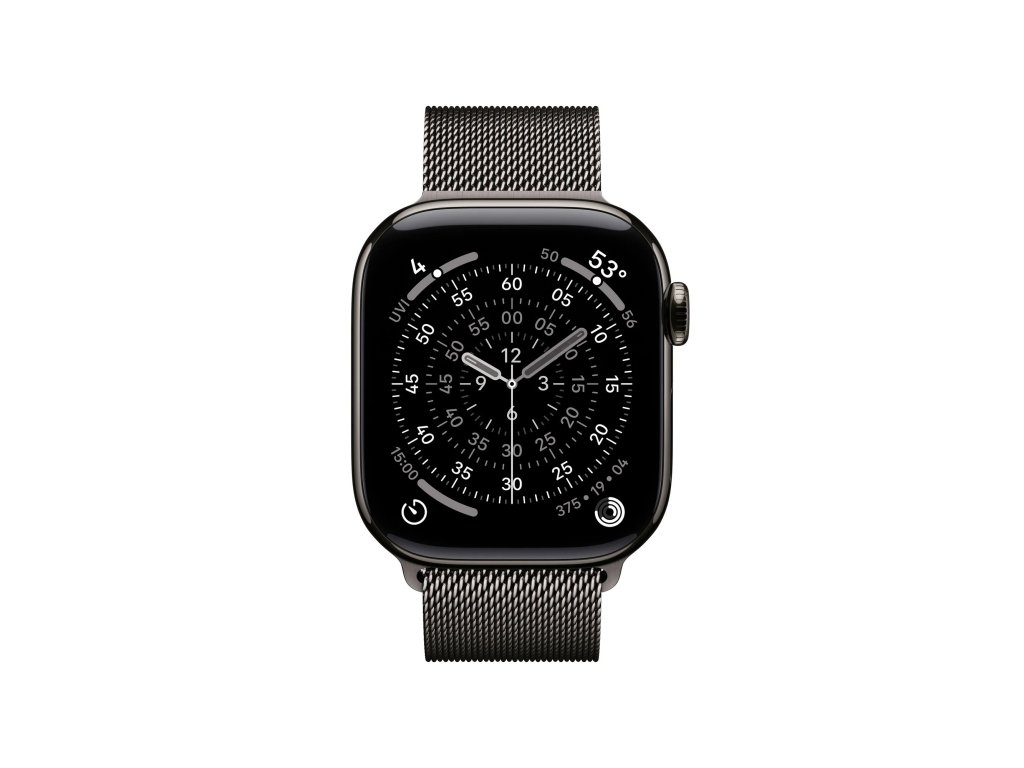Apple Watch Series 11 Milanese Loop břidlicově šedé * pro zápěstí s obvodem 130–200 mm * korunka Digital Crown s haptickou odezvou * reproduktor/mikrofon Operační systém: watchOS Displej: stále zapnutý LTPO3 OLED Retina, 374×446 pixelů, 989mm2, 326 ppi, 1/2000 nitů Čip: * S10 s 64bitovým dvoujádrovým procesorem * 4jádrový Neural Engine * 64 GB Připojení: * GPS L1, GLONASS, Galileo, QZSS a BeiDou * LTE a UMTS * Wi-Fi 4 (802.11n) * podpora 2,4GHz a 5GHz Wi-Fi sítí * Bluetooth 5.3 * NFC: Apple Pay, GymKit Snímače: * elektrický snímač srdeční činnosti * třetí generace optického snímače srdeční činnosti * saturace kyslíkem * teploty * hloubkoměr do 6 m * teploty vody * kompas * stále aktivní výškoměr * akcelerometr snímající vysoké přetížení * gyroskop s vysokým dynamickým rozsahem * okolního osvětlení Voděodolnost: do 50 m (pro plavání) Odolnost proti prachu: IP6X Funkce: * aplikace Saturace kyslíkem * aplikace EKG * aplikace Sledování cyklu se zpětným odhadem doby ovulace * aplikace Srdeční tep * oznámení o vysoké a nízké tepové frekvenci * oznámení o nepravidelném srdečním rytmu * aplikace Léky * aplikace Všímavost se zaznamenáváním stavu mysli * aplikace Hluk * aplikace Spánek se sledováním fází spánku * spánkové skóre * upozorňování na spánkovou apnoi * oznámení o hypertenzi * tíseň SOS * mezinárodní tísňové volání * detekce autonehody * detekce pádu * monitorování hluku Kompatibilita: iPhone 11 a novější, včetně iPhonu SE (2. generace a novější) s iOS 26 nebo novějším Napájení: vestavěná dobíjecí lithium-iontová, podpora rychlonabíjení, až 24 hodin běžného používání Materiál pouzdra: titan Rozměry: 42x36x9,7mm Hmotnost: 34,6g Obsah balení: * Apple Watch Series 11 * řemínek * magnetická rychlonabíječka Apple Watch s USB-C kabelem (1m)Dodatočné parametre