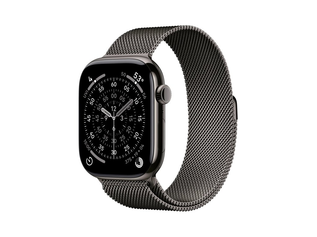 Apple Watch Series 11 Milanese Loop břidlicově šedé S/M * pro zápěstí s obvodem 140–245 mm * korunka Digital Crown s haptickou odezvou * reproduktor/mikrofon Operační systém: watchOS Displej: stále zapnutý LTPO3 OLED Retina, 416×496 pixelů, 1220 mm2, 326 ppi, 1/2000 nitů Čip: * S10 s 64bitovým dvoujádrovým procesorem * 4jádrový Neural Engine * 64 GB Připojení: * GPS L1, GLONASS, Galileo, QZSS a BeiDou * LTE a UMTS * Wi-Fi 4 (802.11n) * podpora 2,4GHz a 5GHz Wi-Fi sítí * Bluetooth 5.3 * NFC: Apple Pay, GymKit Snímače: * elektrický snímač srdeční činnosti * třetí generace optického snímače srdeční činnosti * saturace kyslíkem * teploty * hloubkoměr do 6 m * teploty vody * kompas * stále aktivní výškoměr * akcelerometr snímající vysoké přetížení * gyroskop s vysokým dynamickým rozsahem * okolního osvětlení Voděodolnost: do 50 m (pro plavání) Odolnost proti prachu: IP6X Funkce: * aplikace Saturace kyslíkem * aplikace EKG * aplikace Sledování cyklu se zpětným odhadem doby ovulace * aplikace Srdeční tep * oznámení o vysoké a nízké tepové frekvenci * oznámení o nepravidelném srdečním rytmu * aplikace Léky * aplikace Všímavost se zaznamenáváním stavu mysli * aplikace Hluk * aplikace Spánek se sledováním fází spánku * spánkové skóre * upozorňování na spánkovou apnoi * oznámení o hypertenzi * tíseň SOS * mezinárodní tísňové volání * detekce autonehody * detekce pádu * monitorování hluku Kompatibilita: iPhone 11 a novější, včetně iPhonu SE (2. generace a novější) s iOS 26 nebo novějším Napájení: vestavěná dobíjecí lithium-iontová, podpora rychlonabíjení, až 24 hodin běžného používání Materiál pouzdra: titan Rozměry: 46x39x9,7mm Hmotnost: 43,1g Obsah balení: * Apple Watch Series 11 * řemínek * magnetická rychlonabíječka Apple Watch s USB-C kabelem (1m)Dodatočné parametre