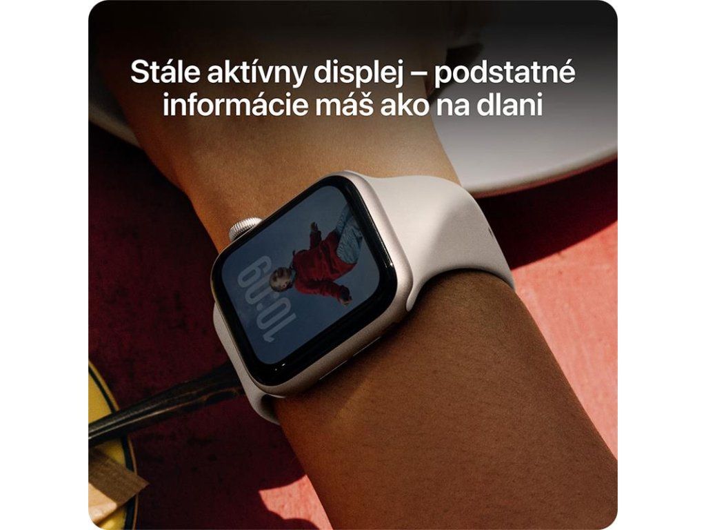 VŽDY ZAPNUTÝ DISPLEJ— Teraz si môžete pozrieť čas a zobraziť ciferník hodiniek bez toho, aby ste museli zdvihnúť zápästie, aby ste prebudili displej.