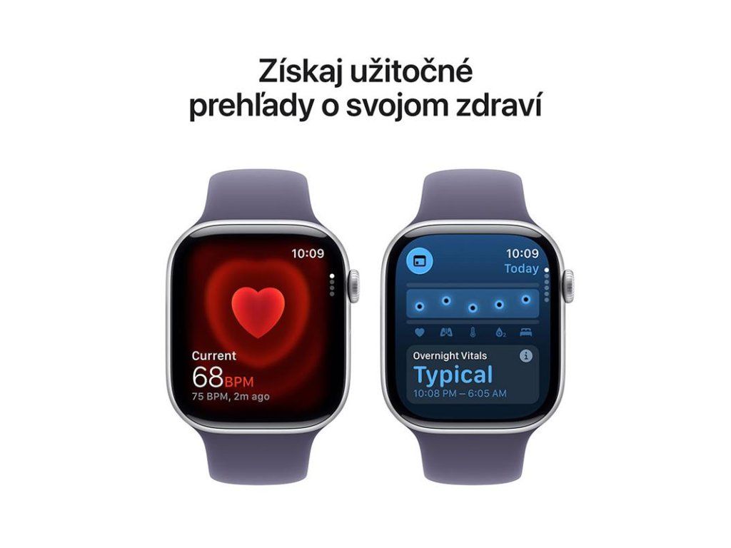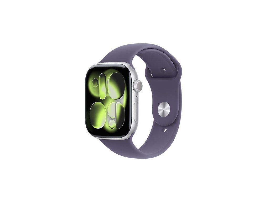 Apple Watch Series 11 GPS 46mm Strieborný hliník s hmlisto fialovým športovým remienkom - M/L MEVA4WF/A