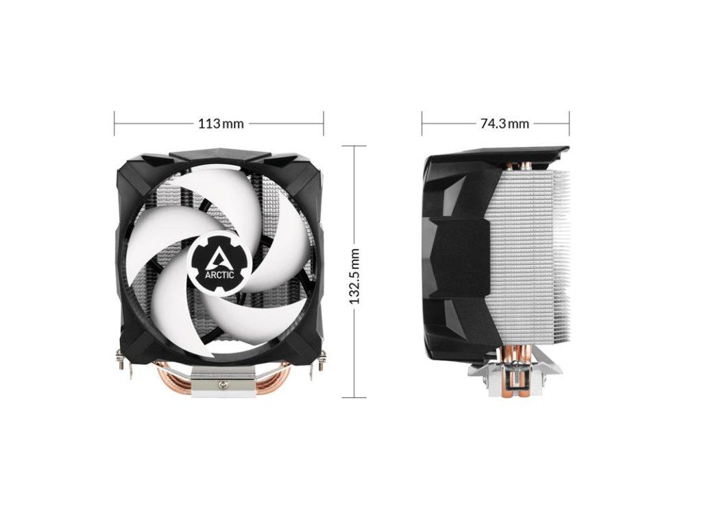 Intel Socket: 1851, 1700, 1200, 115X AMD Socket: AM5, AM4, AM3(+) Ram Clearance: unlimited Warranty: 6 Years Operating Ambient Temperature: 0—40 °C Heatsink Heatpipes: 2 Fin Material: Aluminum Number of Fins: 44 Fin Thickness: 0.4 mm Thermal Paste: MX-4 pre-applied Fan Fan Size: 100 Fan Speed: 300—2000 rpm Fan Bearing: Fluid Dynamic Bearing Noise Level: 0.3 Sone Current: 0.07 A Connector: 4-Pin Size & Weight Length: 74.3 mm Width: 110.5 mm Height: 132.5 mm Weight: 425Dodatočné parametre