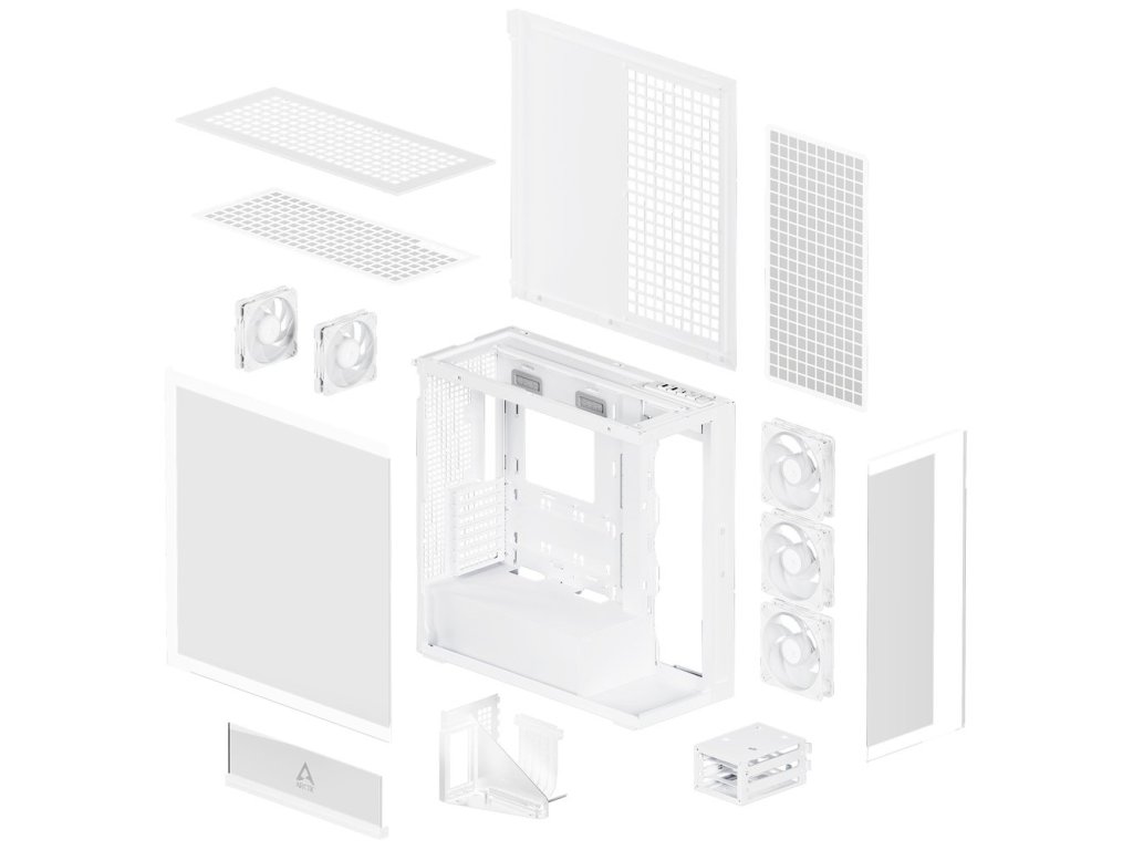 Elegantní bílá skříň ARCTIC Xtender VG kombinuje moderní design s čirým sklem a špičkovou funkčností. Díky prostornému interiéru pojme E-ATX základní desky až 285 mm široké a nabízí vynikající možnosti chlazení s podporou 360mm a 420mm radiátorů v horní i boční pozici.
