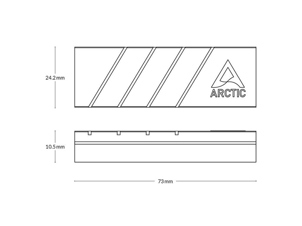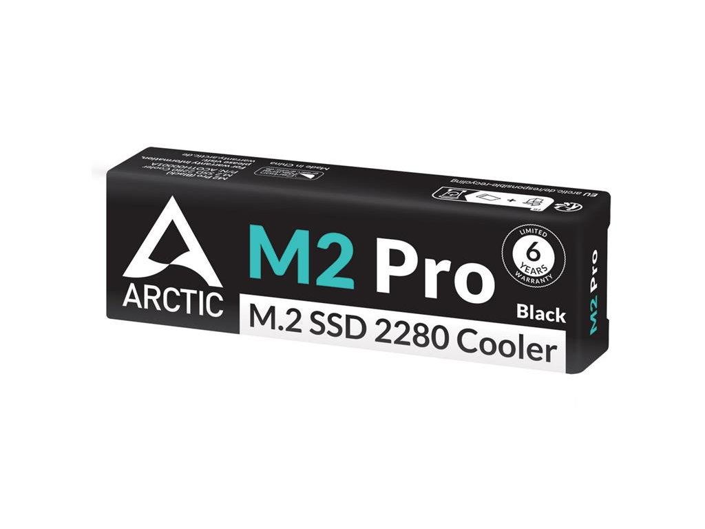 Arctic SSD Cooler for M.2 Drives M2 Pro Black PS5 Compatible M.2 SSD Cooling It’s possible to expand the storage capacity of the PlayStation 5 by retrofitting a fast M.2 SSD. Sony expressly emphasizes in the instructions that this M.2 storage medium requires a heat sink. The ARCTIC M2 Pro meets the specified requirements and is therefore suitable for installation in the PS5 and PS5 Slim. General Specifications Dimensions 73 (L) x 24.2 (W) x 10.5 (H) mm Weight 40.5 g Warranty 6 Years Material Aluminium Thermal Pad 1 x TP-3 70 x 20 mm, 1.5 mm 1 x TP-3 70 x 20 mm, 1 mmDodatočné parametre