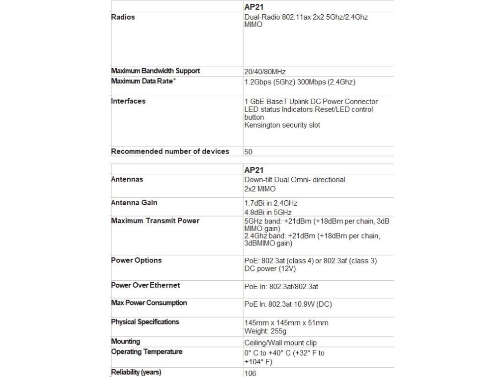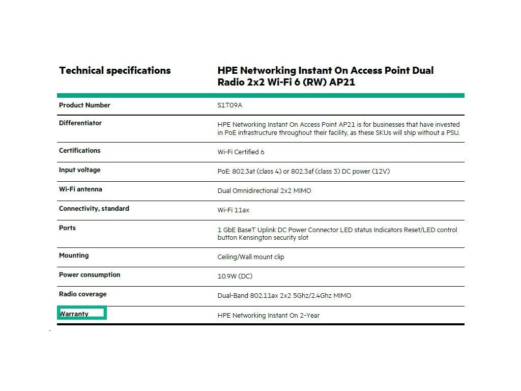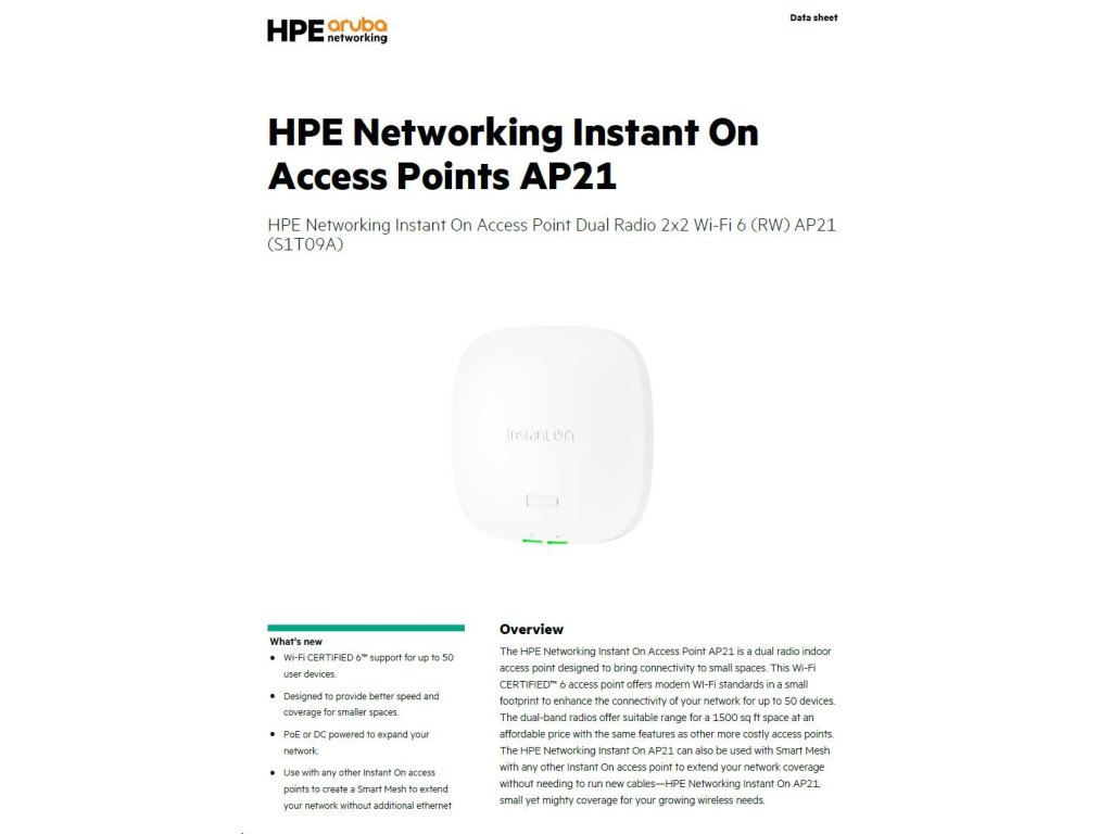 Aruba Instant On AP21 (RW) Dual Radio 2x2 Wi-Fi 6 Access Point (S1T09A) S1T09A