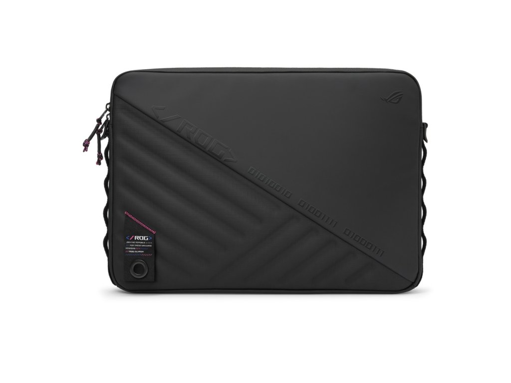 ROG Slash Sleeve 4.0 ti umožní bezpečně uložit 16'' notebook a veškeré příslušenství – je to dokonalý organizér pro každého technologického nadšence z řady ROG. Sleeve 4.0 pohodlně pojme 16'' notebook, napájecí adaptér i myš, a přitom si zachovává tenký profil. Odolné materiály proti roztržení a voděodolná úprava chrání tvé vybavení před poškozením. Rukojeť pro uchycení ke kufru, nastavitelný ramenní popruh a tříbodový fixační systém zajistí pohodlné nošení přesně podle tvých preferencí. Vnitřní kapsy a vnější oddíl poskytují spoustu možností, jak uložit vybavení přehledně a stylově. Matně černý design se hodí ke každému outfitu a působí elegantně v každé situaci. Uvnitř najdeš vlastní monogramy ROG a vnější látka je zdobena ROG kódem – podpis značky tak nikdy nechybí.Dodatočné parametre