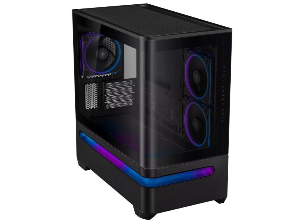 ASUS Prime AP202 ARGB je skriňa mATX so zakriveným sklom, ktorá podporuje grafické karty dlhé až 420 mm a je vybavená patentovaným dizajnom prúdenia vzduchu, ktorý obsahuje inovatívny ventilačný otvor v spodnej časti skrine.