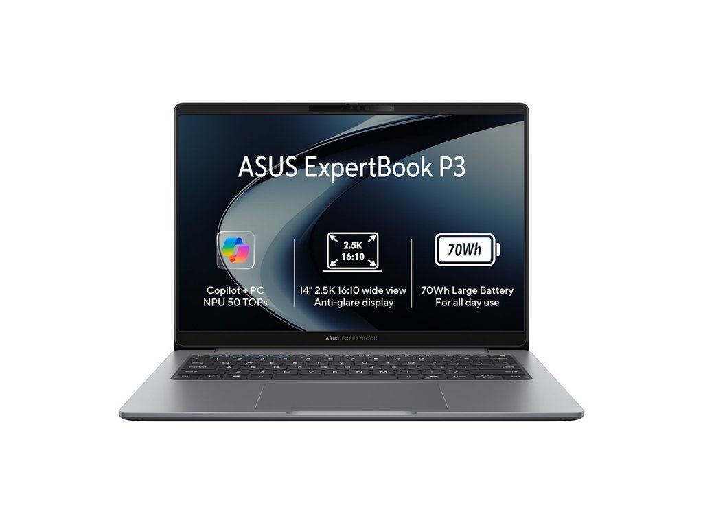Model: ASUS ExpertBook P3 Operačný systém: Windows 11 Home Procesor: AMD Ryzen™AI 5 330 2,0 GHz (8 MB vyrovnávacej pamäte, až 4,5 GHz, 4 jadrá, 8 vlákien) Pamäť: 16GB DDR5 SO-DIMM Počet slotov (celkom/voľných): 2x slot DDR5 SO-DIMM (2/1) Pevný disk: 512GB M.2 2280 NVMe™ PCIe® 4.0 SSD Rozširujúce sloty pevného disku: 1x M.2 SSD Optická mechanika: nie Čítačka pamäťových kariet: nie Displej: 14" FHD WQXGA (2560 x 1600) 16:10 antireflexný IPS, LED, 100% NTSC, 400 nitov, 144Hz Grafická karta: Integrovaná AMD Radeon™ Graphics Audio: zvuk od značky Dirac, integrovaný reproduktor; integrovaný mikrofón Webkamera: 1080p FHD kamera s funkciou IR pre podporu Windows Hello Polohovacie zariadenie: Touchpad Podsvietená klávesnica: áno Numerická klávesnica: nie Čítačka odtlačkov prstov: áno Sieť: GbE Bezdrôtová komunikácia: WLAN + Bluetooth (Wi-Fi 6 802.11be 2*2 + Bluetooth® 5.4) Porty USB: 2x USB 3.2 Gen 1 typu A 2x USB 3.2 Gen 2 typu C, podpora DP/PD Ďalšie porty: 1x HDMI 2.1 1x 3,5mm kombinovaný audio konektor 1x RJ45 Batéria: 70Wh, 4S1P, 4článková Li-ion Napájanie: 90W AC, USB-C Farba: šedá (Misty Grey) Materiál: plast Rozmery: (Š x V x H) 31,27 x 22,71 x 1,79 ~ 1,80 cm Hmotnosť: 1,42 kgDodatočné parametre