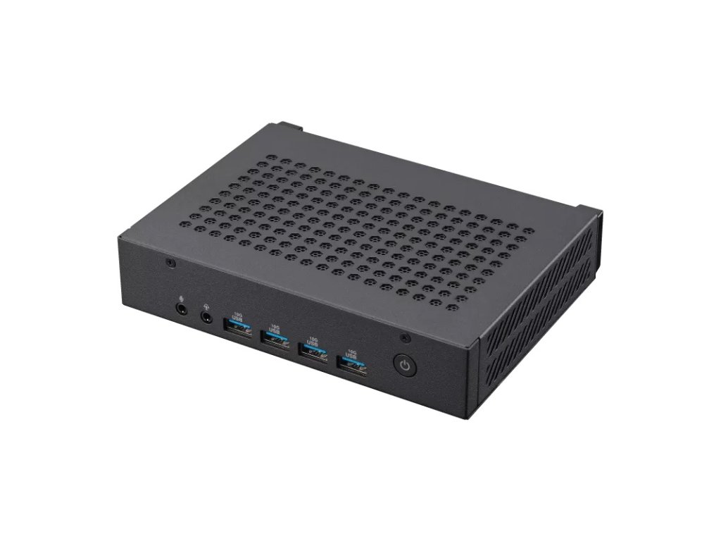 ASUS ExpertCenter PN43 * podpora až 3 displejů současně nebo dvou displejů 4K s integrovanou grafikou * zabezpečené připojení napájení * objem 0,67 l Operační systém: ne Procesor: Intel N-series N200 (4 jádra, 4 vlákna, 1,0/3,7 GHz, 6 MB cache) Paměť: ne Pevný disk: ne Pozice pro interní jednotku: 1x M.2 2280 PCIe Gen3x4 (podpora 128GB-2TB NVMe™ SSD) Optická jednotka: ne Čtečka paměťových karet: ne Grafická karta: Integrovaná Intel UHD Graphics Xe 750 32EU Síť: 10/100/1000/2500Mb/s, 2,5G LAN Bezdrátová komunikace: WLAN + Bluetooth (Intel® Wi-Fi 6 (Gig+) 2x2 + Bluetooth® 5.2) Napájení: externí napájecí 19V DC, 3,42A, 65W Přední/boční porty: * 4x USB 3.2 Gen 1 typ-A * 1x mikrofonní vstup * 1x audio konektor (linkový výstup/mikrofonní vstup/výstup pro sluchátka) Zadní porty: * 3x USB 2.0 * 2x DisplayPort 1.4 * 1x HDMI 2.1 (až 4K@60Hz) * 1x 2,5G RJ45 LAN * 1x DC-in * 1x kroužek pro visací zámek Barva: černá Rozměry: 166,2x119,7x33,9mm Hmotnost: 700g Záruka: 3 roky Vesa držák je součástí balení. Testované kompatibilní paměti jsou uvedeny na stránkách výrobceDodatočné parametre