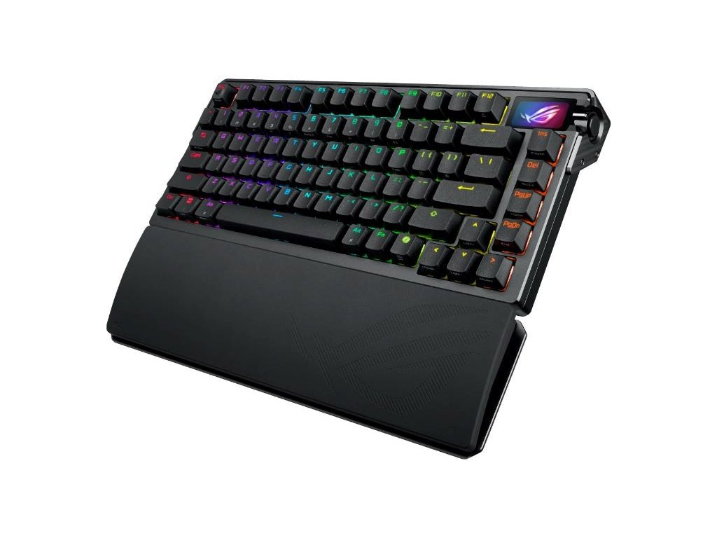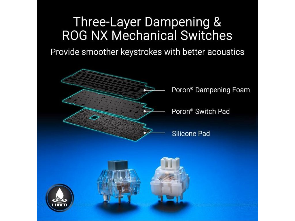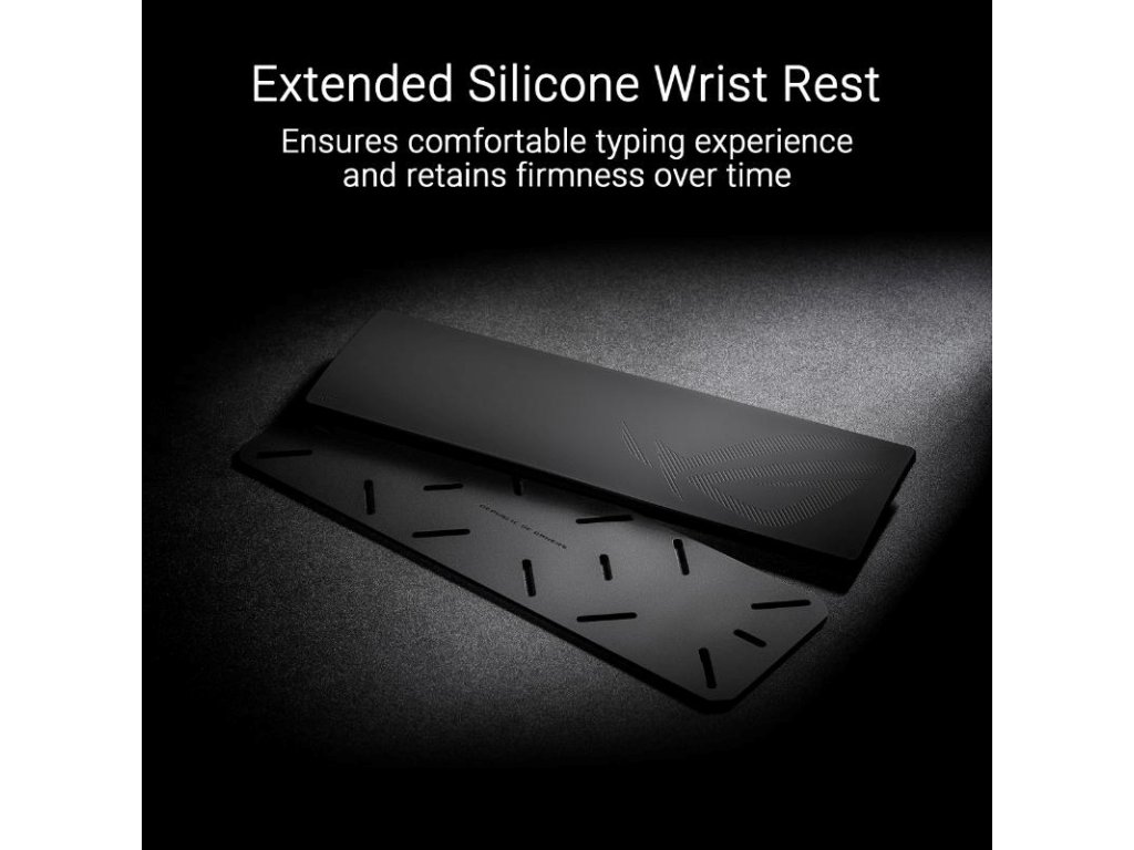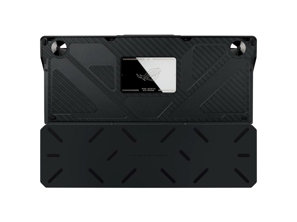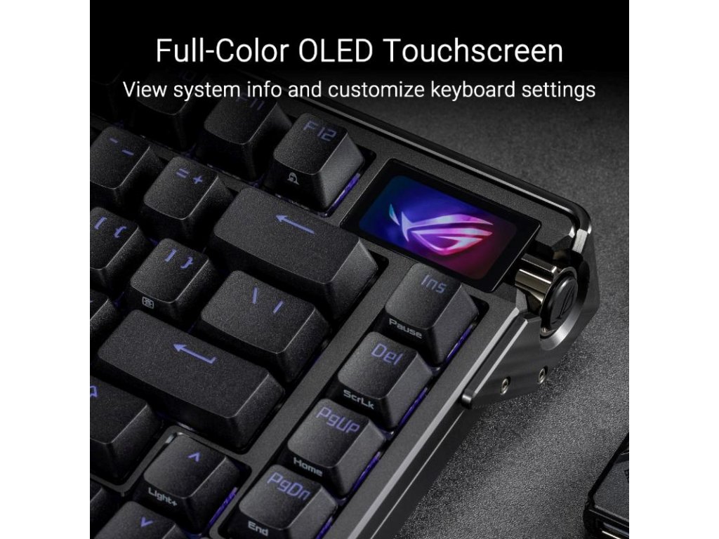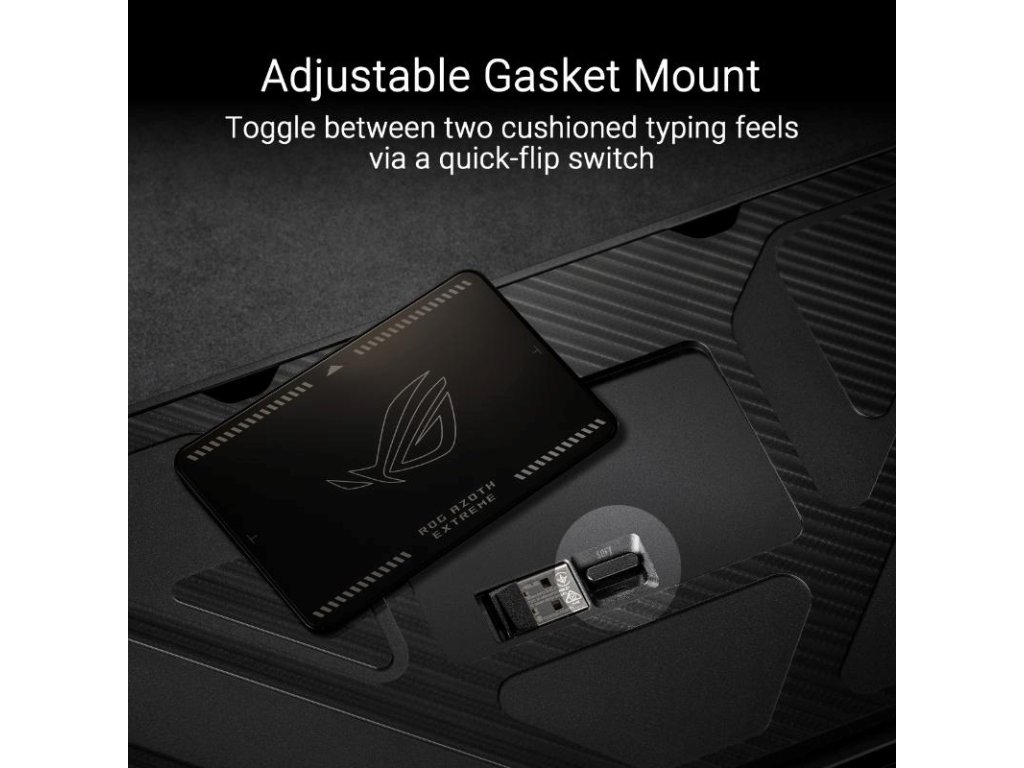 ROG Azoth Extreme je prispôsobiteľná 75% herná klávesnica s prémiovým šasím z hliníkovej zliatiny a kovovým rámom. Vyznačuje sa rýchlosťou hlásenia 8000 Hz s ROG Polling Rate Booster a viac než 1600 hodín výdrže batérie v bezdrôtovom režime ROG SpeedNova 2,4 GHz. Vylepšený OLED dotykový displej a trojpólový knoflík umožňujú sledovanie systému a rýchle nastavenie. Polohovacia doska z uhlíkovej ocele zabezpečuje ostrý zvuk pri písaní, zatiaľ čo tri tlmiace vrstvy absorbujú vibrácie. Nastaviteľný držiak tesnenia s pádly spínača ponúka dve možnosti písania.