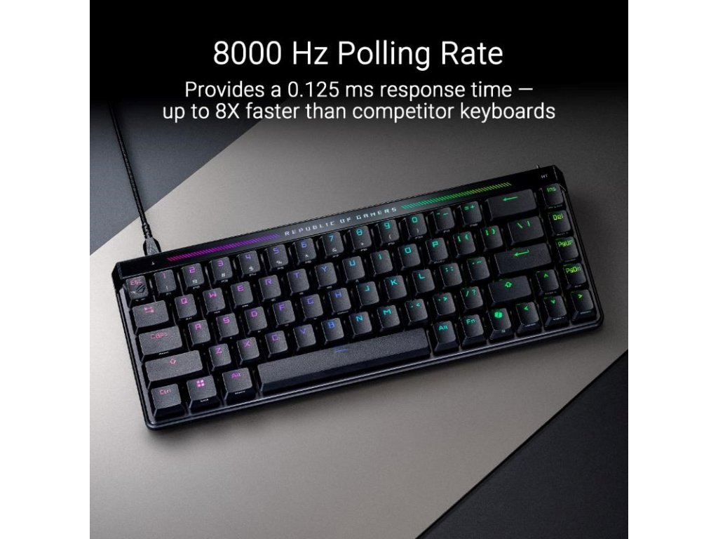 - 8000 Hz polling rate: Poskytuje dobu odozvy 0,125 ms – až 8x rýchlejšie než konkurenčné klávesnice