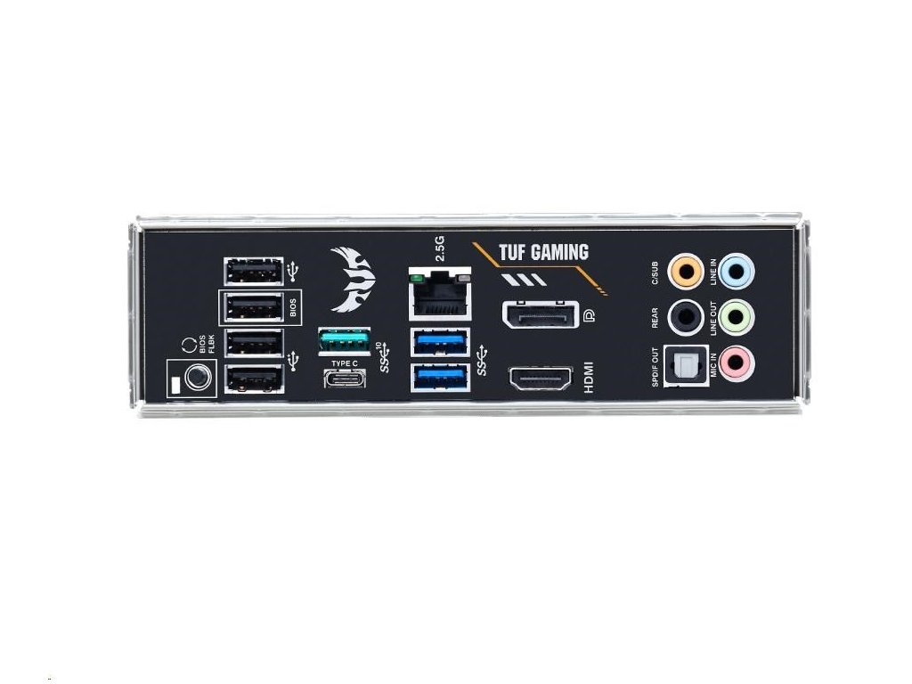 | zadné I/O porty | 1 x DisplayPort 1 x HDMI 1 x LAN (2.5G) 2 x USB 3.2 Gen 2 (teal blue) (1 x Type-A+1 x USB Type-C) 2 x USB 3.2 Gen 1 (modrý) Type-A 4 x USB 2.0 (jeden port možno prepnúť na USB BIOS FlashBack™) 1 x optický S/PDIF výstup 5 x audio jack(y) 1 x tlačidlo BIOS FlashBack™ |