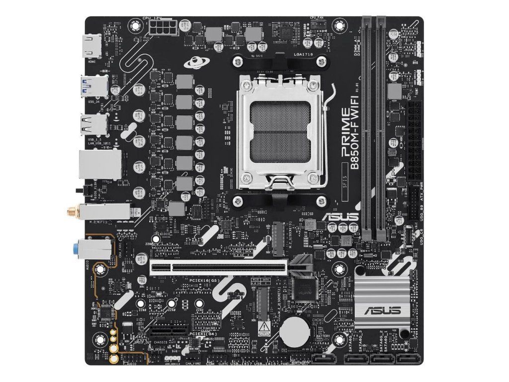 Na základe čipovej súpravy AMD B850 je základná doska ASUS PRIME B850M-F WIFI navrhnutá tak, aby pojala procesory AMD Ryzen 7000/8000/9000 na pätici AM5. Je ideálna na zostavenie hernej alebo multimediálnej konfigurácie. Cena je dostupnejšia ako u čipovej súpravy X870, pričom podporuje DDR5, grafické karty PCI-Express 5.0 a SSD M.2 PCIe 5.0.