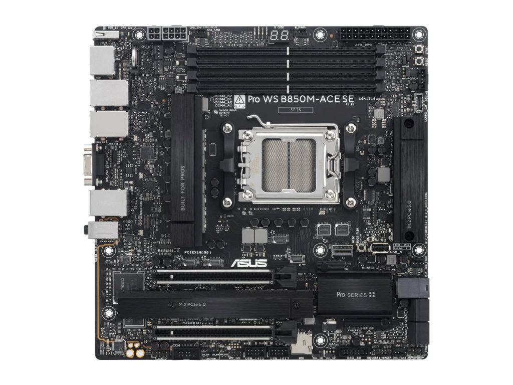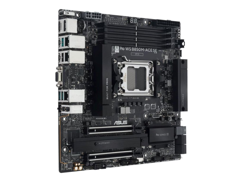 ASUS Pro WS B850M-ACE SE AMD Micro-ATX základná doska, s správou na úrovni servera IPMI, PCIe 5.0 x 16, PCIe 5.0 M.2, PCIe 5.0 MCIO, konektor U.2, 10Gb a 2.5Gb Ethernet, pripravená pre USB4.