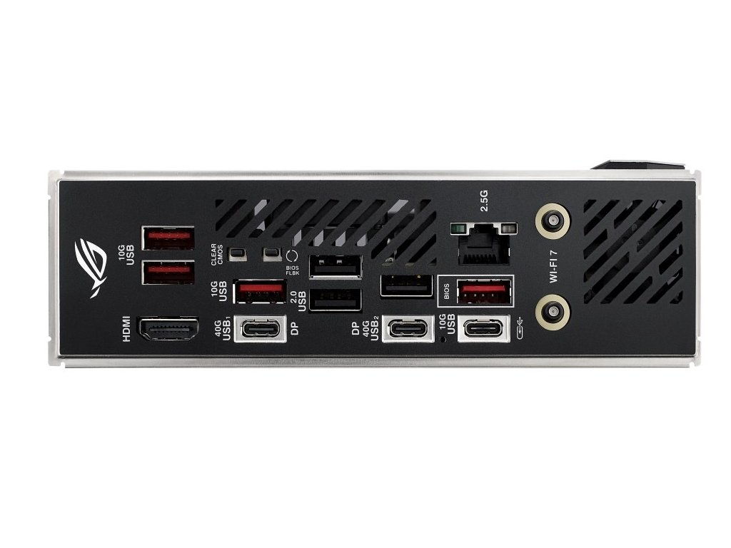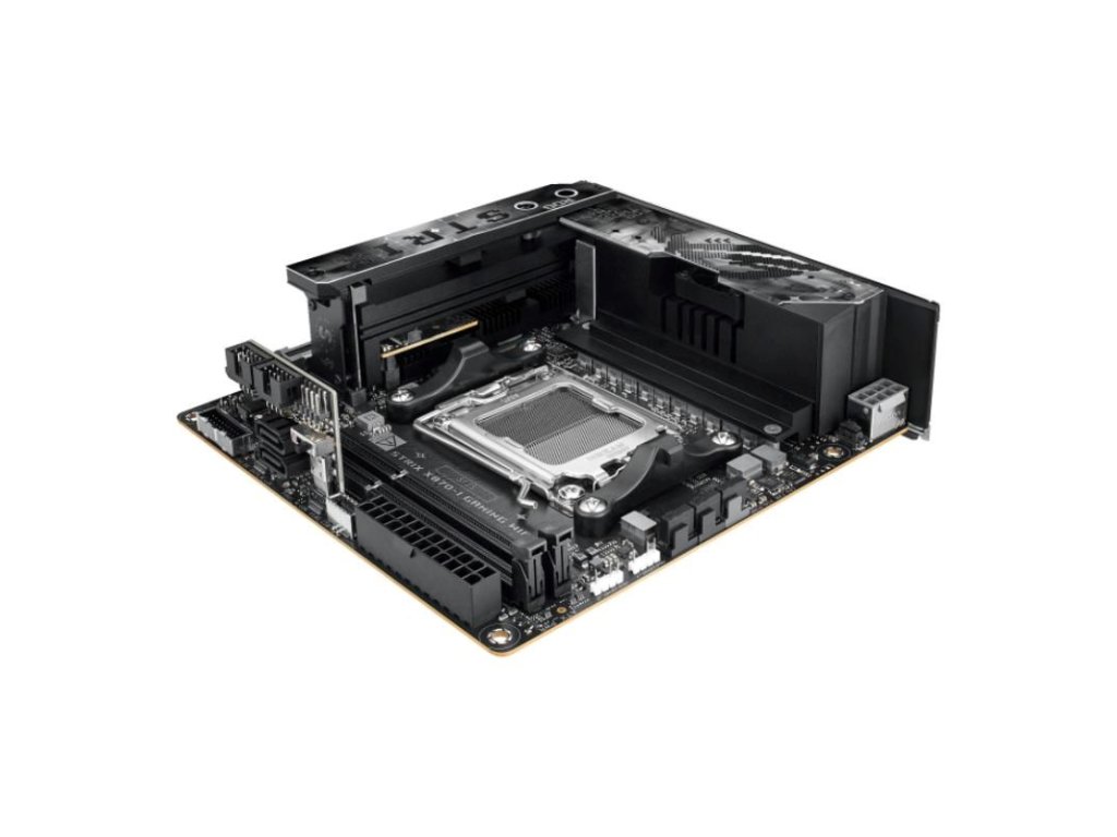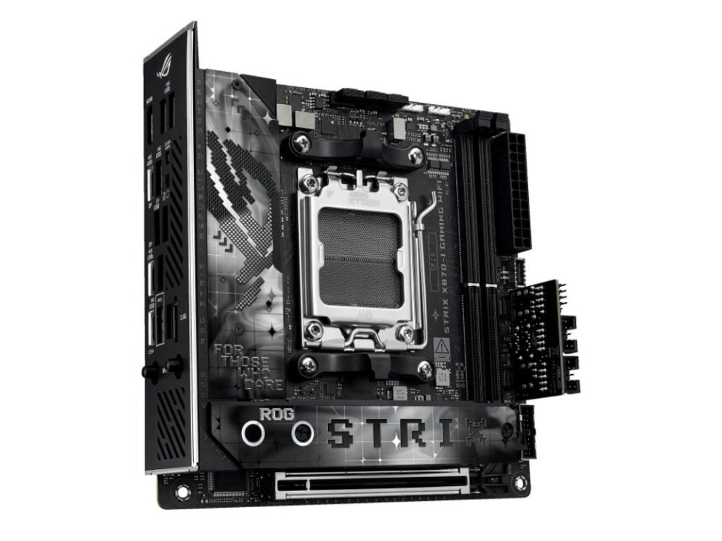 AMD X870 Mini-ITX základná doska s 10+2+1 napäťovými stupňami, Dynamic OC Switcher, Core Flex, DDR5 zásuvkami s AEMP, WiFi 7 s ASUS WiFi Q-Antenna, dve M.2 zásuvky, PCIe 5.0 x16 SafeSlot s PCIe Slot Q-Release Slim a plnou podporou grafických kariet budúcnosti, dva USB4 porty, ROG Strix Hive II, AI Overclocking, AI Cooling II, AI Networking II a Aura Sync RGB osvetlenie.