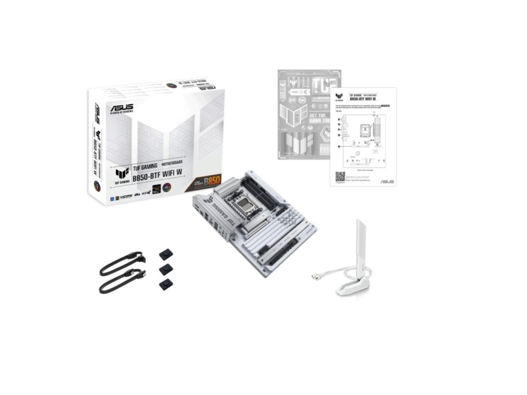 TUF GAMING B850-BTF WIFI W má všetky základné prvky najnovších procesorov AMD Ryzen™ a kombinuje ich s hernými funkciami a overenou odolnosťou. „BTF“ znamená „Back To (the) Future“ pre novú éru všetkých PC DIY hráčov; pokročilá séria BTF nielenže skrýva všetky svoje konektory na spodnej strane základnej dosky, ale tiež poskytuje až 600 wattov pre grafické karty BTF cez vysokovýkonný slot pre grafické karty, pre čisté spravovanie kabeláže a minimalistický vzhľad zostavy. Táto platforma poskytuje výkon a konektivitu, ktorú vyžadujú pokročilé AI PC aplikácie.