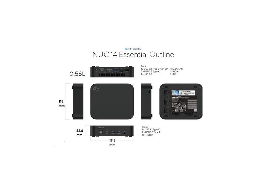 ASUS NUC 14 Essential Intel N250, 1xDDR5, M.2 SSD, WiFi+BT, HDMI, DP, USB-C/DP, 2.5G LAN, 90AR00M2-M00030