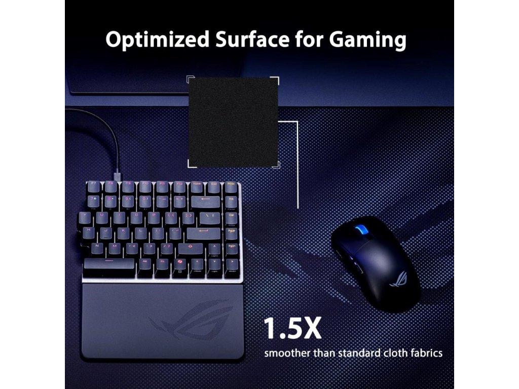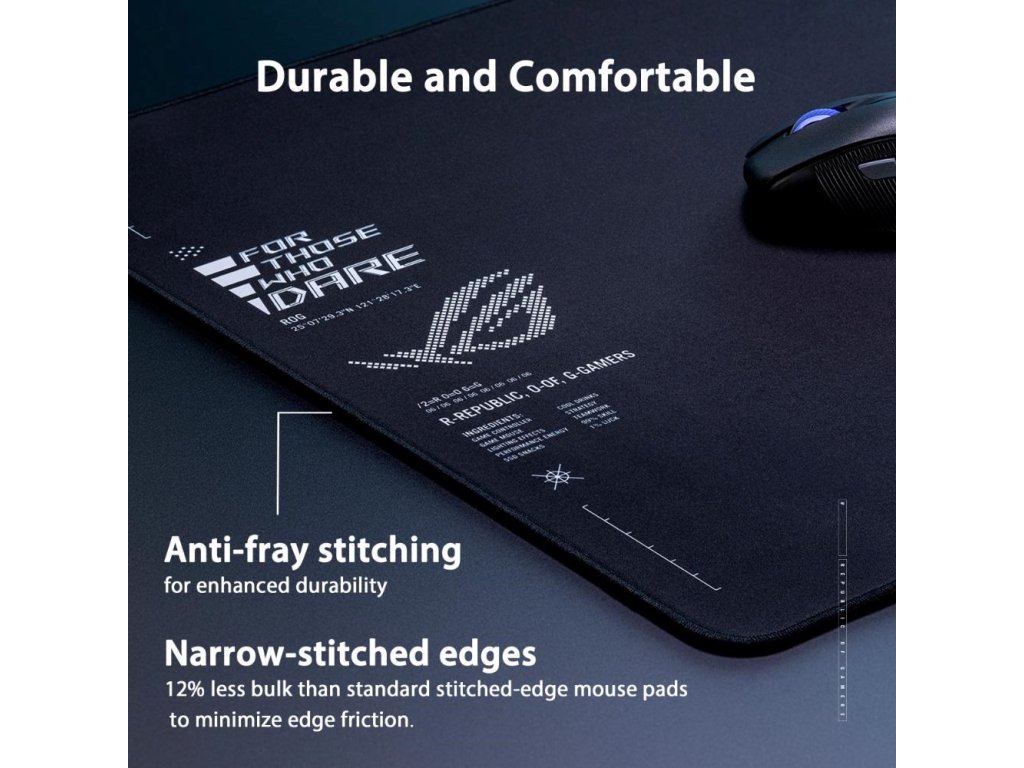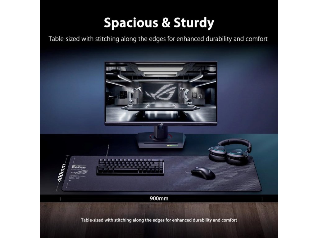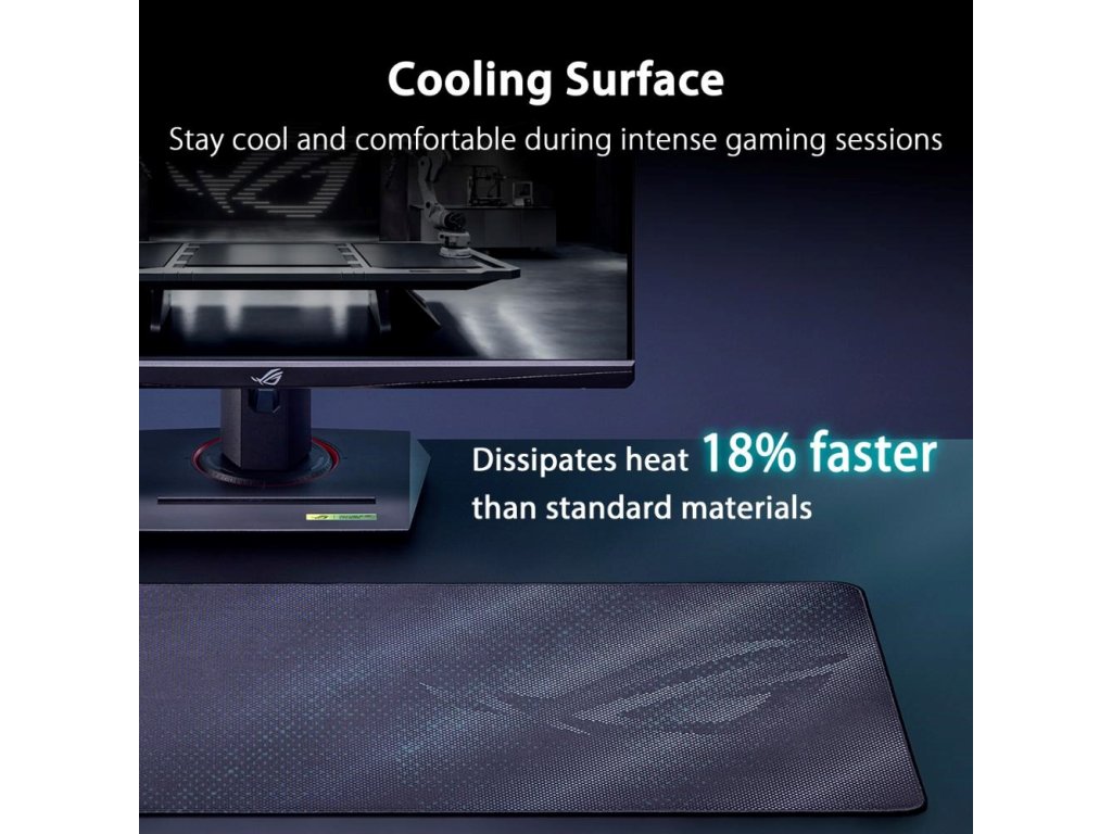 ROG Sheath II XXL je veľká herná podložka pod myš s pokročilou chladicou tkaninou a plochými šiťými okrajmi proti odieraniu a protišmykovou gumovou základňou