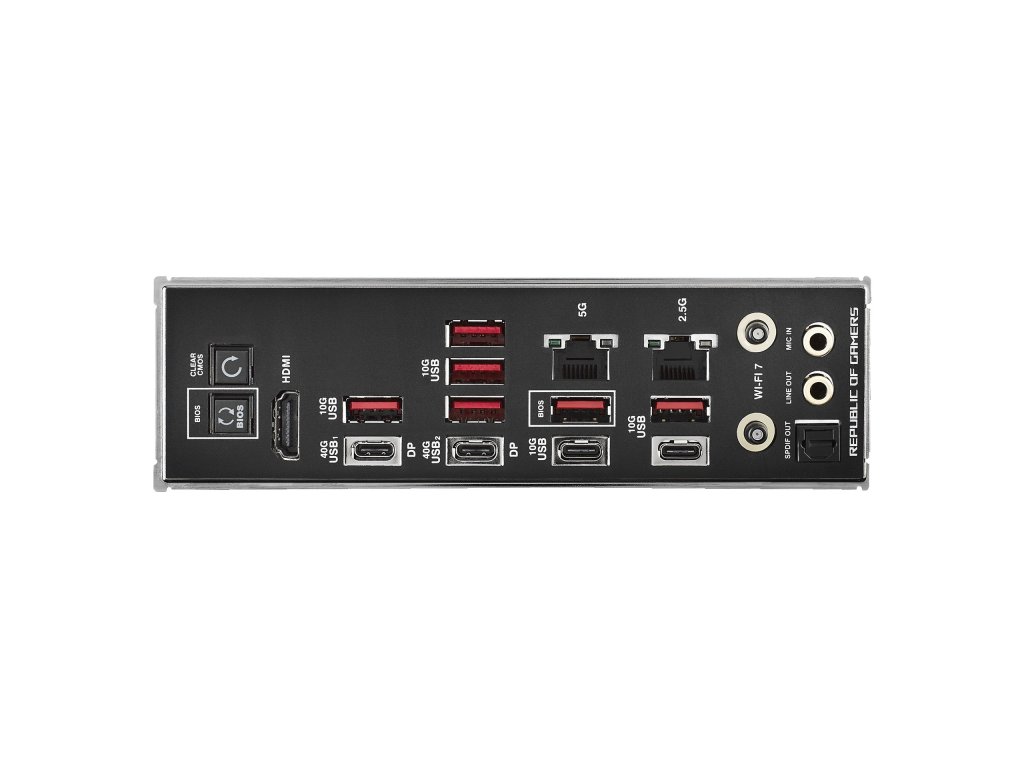 ASUS ROG CROSSHAIR X870E HERO * AI Overclocking * AI Cooling II * AI Networking II * osvětlení Polymo II * EZ PC DIY * pohlcující zvuk: kodek ROG SupremeFX ALC4082 s převdoníkem ESS® ES9219 QUAD DAC a Dolby Atmos® Chipset: AMD X870E Rozměrový formát: ATX 305x244mm Podpora pro procesory: AMD Ryzen™ řady 9000 & 8000 & 7000 Patice procesoru: AM5 Paměť: * 4x DIMM, max. 192GB, DDR5 podporuje až 8200+MT/s (OC) s procesory řady 9000, až 8600+MT/s (OC) s procesory řady 8000, až 8000+MT/s (OC) s procesory řady 7000 * ECC a Non-ECC * dvoukanálová architektura paměti * podporuje AMD EXtended Profiles for Overclocking (EXPO™) Grafické porty: specifikace grafiky se mohou u různých typů CPU lišit * 1x HDMI® 2.1 * 2x USB4® (40 Gb/s) Zvuková karta: ROG SupremeFX 7.1 Surround Sound High Definition Audio CODEC ALC4082 - podporuje: detekci jacků, Multi-streaming, změnu pořadí jacků na předním panelu - vysoce kvalitní 120dB SNR stereo přehrávání a 110dB SNR záznamový vstup - podporuje přehrávání až 32-bit/384kHz Ethernet: 1x Intel® 2,5GbE, 1x Realtek 5GbE, ASUS LANGuard WLAN + Bluetooth: 2x2 Wi-Fi 7 (802.11be), podporuje frekvenční pásmo 2,4/5/6 GHz + Bluetooth v5.4 (podporuje Wi-Fi 7 šířku pásma 320 MHz, přenosovou rychlost až 6,5 Gb/s) Rozšiřující sloty: * řada 9000 a 7000 - 2x PCIe 5.0 x16 s Q-Release Slim (podporuje režim x16 nebo x8/x8 nebo x8/x4/x4) * řada 8700, 8600 a 8400 - 2x PCIe 4.0 x16 s Q-Release Slim (podporuje pouze PCIEx16_1 a celkovou šířku pásma pro x8, PCIEx16_2 bude deaktivováno) * řada 8500 a 8300 - 2x PCIe 4.0 x16 s Q-Release Slim (podporuje pouze PCIEx16_1 a celkovou šířku pásma pro x4, PCIEx16_2 bude deaktivováno) RAID řadič: AMD RAIDXpert2 Technology podporuje PCIe a SATA RAID 0/1/5 (pouze CPU AMD Ryzen™ řady 9000)/10 Úložný prostor: celkem podporuje 5 slotů M.2, 1 konektor SlimSAS a 4 porty SATA 6Gb/s Desktopové procesory AMD Ryzen™ řady 9000 a 7000 * 1x M.2_1 (Key M), typ 2242/2260/2280 (podporuje režim PCIe 5.0 x4) * 1x M.2_2 (Key M), typ 2242/2260/2280 (podporuje režim PCIe 5.0 x4) * 1x M.2_3 (Key M), typ 2242/2260/2280 (podporuje režim PCIe 5.0 x4) Desktopové procesory AMD Ryzen™ řady 8000 * 1x M.2_1 (Key M), typ 2242/2260/2280 (podporuje režim PCIe 4.0 x4) * 1x M.2_2 (Key M), typ 2242/2260/2280 (nepodporuje) * 1x M.2_3 (Key M), typ 2242/2260/2280 (nepodporuje) čipová sada AMD X870E * 1x M.2_4 (Key M), typ 2242/2260/2280 (podporuje režim PCIe 4.0 x4) * 1x M.2_5 (Key M), typ 2280 (podporuje režim PCIe 4.0 x4) * 1x SlimSAS (podporuje režim PCIe 4.0 x4) * 4x port SATA 6 Gb/s USB: Zadní USB (celkem 10 portů) * 2x USB4® 40Gb/s (2x USB typ-C®) * 8x USB 10Gb/s (6x typ-A + 2x USB typ-C®) Přední USB (celkem 10 portů) * 1x USB 20Gb/s (podpora USB typ-C® s až 60W PD/QC4+) * 1x USB 20Gb/s konektor (podpora USB typ-C®) * 2x USB 5Gb/s header (podpora dalších 4 USB 5Gb/s) * 2x USB 2.0 header (podpora dalších 4 USB 2.0) Interní porty: Související s ventilátorem a chlazením * 1x 4-pin CPU header ventilátoru * 1x 4-pin CPU OPT header ventilátoru * 1x 4-pin AIO header čerpadla * 4x 4-pin header šasi ventilátoru * 1x header W_PUMP+ Napájení * 1x 24-pin hlavní napájecí konektor * 2x 8-pin +12V napájecí konektor * 1x 8-pin PCIe napájecí konektor Související s úložištěm * 5x M.2 slot (Key M) * 1x SlimSAS konektor * 4x SATA 6Gb/s port USB * 2x USB 20Gb/s konektor (podpoa USB typ-C®) * 2x USB 5Gb/s header (podpora dalších 4 USB 5Gb/s) * 3x USB 2.0 header (podpora dalších 6 USB 2.0) Ostatní * 3x adresovatelný Gen 2 header * 1x Alteration PCIe mode switch * 1x Front Panel Audio header (F_AUDIO) * 1x tlačítko Start * 1x tlačítko ReTry * 1x tlačítko FlexKey * 1x 10-1pin System Panel header * 1x Thermal Sensor header * 1x LN2 Mode jumper Porty na zadním panelu: * 2x USB4® 40Gb/s (2x USB typ-C®) * 8x USB 10Gb/s (6x typ-A + 2x USB typ-C®) * 1x HDMI™ * 1x modul Wi-Fi * 1x Intel® 2,5Gb Ethernet * 1x Realtek 5Gb Ethernet * 2x audio pozlacený konektor (3,5mm) * 1x optický výstup S/PDIF * 1x tlačítko BIOS FlashBack™ * 1x tlačítko Clear CMOS BIOS: 256Mb Flash ROM, UEFI AMI BIOS Příslušenství: * 1x ARGB RGB prodlužovací kabel * 4x SATA 6Gb/s kabel * 1x ASUS Wi-Fi Q-anténa * 1x Q-konektor * 2x balení M.2 Q-Latch * 3x balení M.2 Q-Slide * 5x balení M.2 podložek * 1x ROG otvírák láhví * 1x nálepky ROG * 1x ROG karta s poděkováním * 1x USB s nástroji a ovladači * 1x uživatelská příručka Odkaz na stránku výrobce: https://rog.asus.com/motherboards/rog-crosshair/rog-crosshair-x870e-hero/Dodatočné parametre