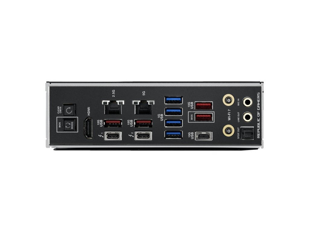 ASUS ROG MAXIMUS Z890 HERO * podsvícení Polymo II * Aura Sync * BIOS Q-Dashboard * EZ PC DIY * AI Networking II * AI Cooling II * AI Overclocking Chipset: Intel® Z890 Rozměrový formát: ATX (305x244mm) Podpora pro procesory: Intel® Core™ Ultra (řada 2) Patice procesoru: LGA1851 Paměť: * 4x DIMM, max. 256GB, DDR5 9200+MT/s (OC), bez ECC, bez vyrovnávací paměti DIMM (CUDIMM) * dvoukanálová architektura paměti * podporuje Intel® Extreme Memory Profile (XMP) * podporuje technologii DIMM Flex * NitroPath DRAM * DIMM FIT * ASUS Enhanced Memory Profile III (AEMP III) Grafické výstupy: specifikace grafiky se mohou u různých typů procesorů lišit * 1x HDMI * 2x Intel® Thunderbolt™ 4 (USB typ C®) podporuje video výstupy DisplayPort a Thunderbolt™ Zvuková karta: ROG SupremeFX 7.1 Surround Sound High Definition Audio CODEC ALC4082 - podporuje přehrávání až 32bit/384 kHz na předním panelu, ESS® ES9219 QUAD DAC Ethernet: * 1x Intel® 2,5GbE * 1x Realtek 5GbE WLAN + Bluetooth: Intel® Wi-Fi 7 2x2 (802.11be) + Bluetooth® v5.4 Rozšiřující sloty: * 1x PCIe 5.0 x16 (podpora režimu x16 nebo x8/x8 nebo x8/x4/x4) * 1x PCIe 4.0 x16 (podpora režimu x4) * 1x PCIe 4.0 x1 RAID řadič: Intel® Rapid Storage podporuje PCIe RAID 0/1/5/10, SATA RAID 0/1/5/10, slot M.2 z CPU podporuje pouze RAID 0/1/5 Úložný prostor: celkem podporuje 6 slotů M.2, 1 konektor SlimSAS, a 4 porty SATA 6Gb/s * M.2_1 (key M), typ 2242/2260/2280/22110 (podpora PCIe 5.0 x4) * M.2_2 (Key M), typ 2242/2260/2280 (podpora PCIe 4.0 x4) * M.2_3 (Key M), typ 2242/2260/2280 (podpora PCIe 5.0 x4) * M.2_4 (Key M), typ 2242/2260/2280 (podpora PCIe 5.0 x4) * M.2_5 (Key M), typ 2242/2260/2280 (podpora PCIe 4.0 x4) * M.2_6 (Key M), typ 2242/2260/2280 (podpora PCIe 4.0 x4) * 4x SATA 6Gb/s * 1x SlimSAS podpora PCIe 4.0 x4 nebo až 4 zařízení SATA přes přenosový kabel USB: Zadní USB (celkem 11 portů) * 2x Thunderbolt™ 4 (2x USB typ C®) * 5x USB 10Gb/s (4x typ A + 1x typ C®) * 4x USB 5Gb/s (4x typ A) Přední USB (celkem 10 portů) * 1x USB 20Gb/s konektor (podpora USB typ C® s až 60W PD/QC4+) * 1x USB 10Gb/s konektor (podpora USB typ C®) * 2x USB 5Gb/s header podpora 4 dalších portů USB 5Gb/s * 2x USB 2.0 header podpora 4 dalších portů USB 2.0 Porty na zadním panelu: * 2x Thunderbolt™ 4 (2x USB typ C®) * 5x USB 10Gb/s (4x typ A + 1x typ C®) * 4x USB 5Gb/s (4x typ A) * 1x HDMI® * 1x modul Wi-Fi * 1x RJ-45 Intel® 2,5Gb * 1x RJ-45 Realtek 5Gb * 2x pozlacený audio konektor * 1x optický výstupní S/PDIF * 1x tlačítko BIOS FlashBack™ * 1x tlačítko Clear CMOS Interní porty: Související s ventilátorem a chlazením * 1x 4pin CPU Fan header * 1x 4pin CPU OPT Fan header * 1x 4pin AIO Pump header * 4x 4pin Chassis Fan header * 1x W_PUMP+ header Napájení * 1x 24pin hlavní napájecí konektor * 2x 8pin +12V CPU napájecí konektor * 1x 8pin PCIe napájecí konektor Související s úložištěm * 6x M.2 slot (key M) * 4x SATA 6Gb/s port * 1x SlimSAS USB * 1x USB 20Gb/s konektor (podpora USB typ C®) * 1x USB 10Gb/s konektor (podpora USB typ C®) * 2x USB 5Gb/s header podpora 4 dalších portů USB 5Gb/s * 2x USB 2.0 header podpora 4 dalších portů USB 2.0 Ostatní * 3x Addressable Gen 2 header * 1x Alteration PCIe mode switch * 1x tlačítko FlexKey * 1x Front Panel Audio header (F_AUDIO) * 1x tlačítko ReTry * 1x tlačítko Start * 1x 10-1pin System Panel header * 1x Thermal Sensor header * 1x Thunderbolt™ (USB4®) header BIOS: 256Mb Flash ROM, UEFI AMI BIOS Příslušenství Kabely: * 1x ARGB RGB prodlužovací kabel * 4x SATA 6Gb/s kabel Přídavná chladicí sada: * 1x tepelná podložka pro M.2 22110 * 1x DDR5 držák ventilátoru Různé: * 1x ASUS WiFi Q-anténa * 1x Q-konektor * 1x ROG samolepky * 1x ROG karta * 1x M.2 balení Q-Latch * 3x M.2 balení Q-Slide * 6x balení M.2 podložek zadní desky * 1x ROG otvírák lahví * 1x USB disk s nástroji a ovladači * 1x průvodce instalací Odkaz na stránky výrobce: https://rog.asus.com/motherboards/rog-maximus/rog-maximus-z890-hero/Dodatočné parametre