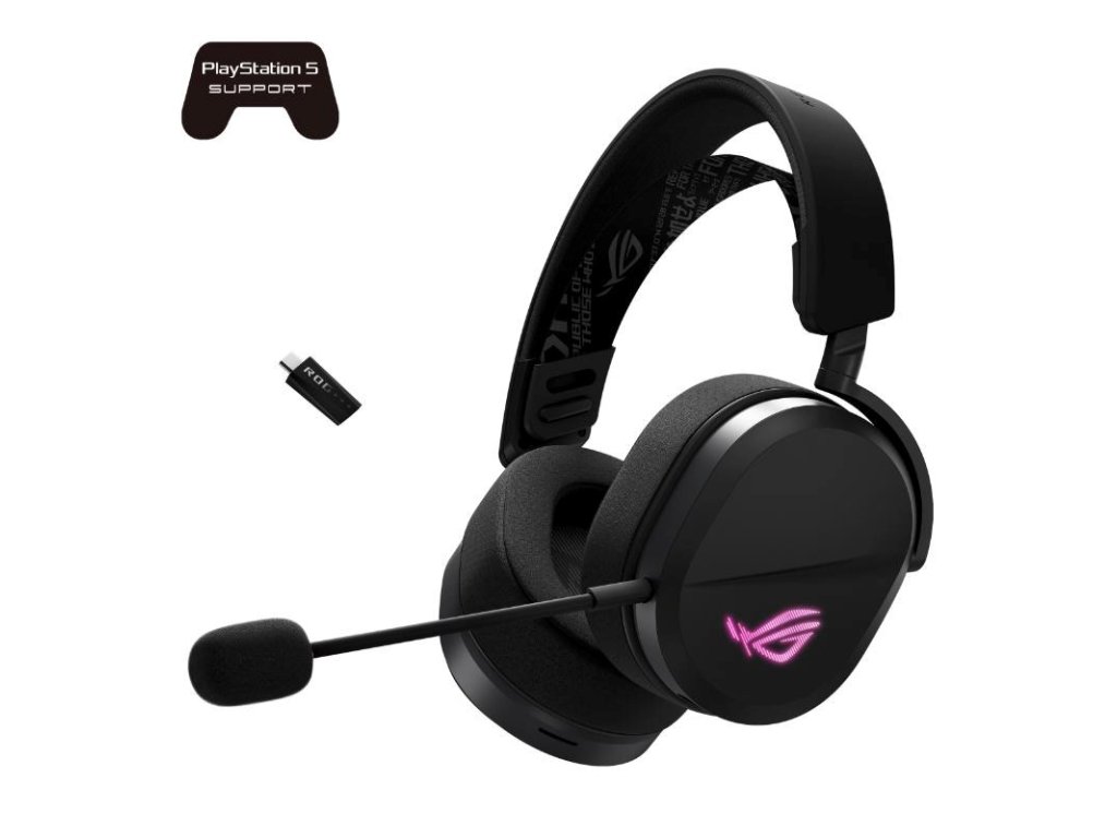 Herné slúchadlá so tri režimami RGB s bezdrôtovou technológiou ROG SpeedNova, 50mm ROG titanom pokovené membránové meniče, vylepšený bezdrôtový zvukový podpis, 10mm super širokopásmový raménkový mikrofón, ľahký dizajn 309 g a navyše osvetlenie ASUS Aura Sync RGB