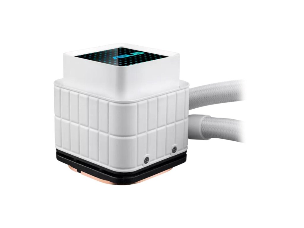 All-in-one vodný chladič procesora Prime LC ARGB White Edition s veľkou kontaktnou plochou a žebrovanými kanálmi, vodným blokom s možnosťou výberu nekonečných zrkadlových čočiek, integrovanými ventilátormi ARGB a osvetlením Aura.
