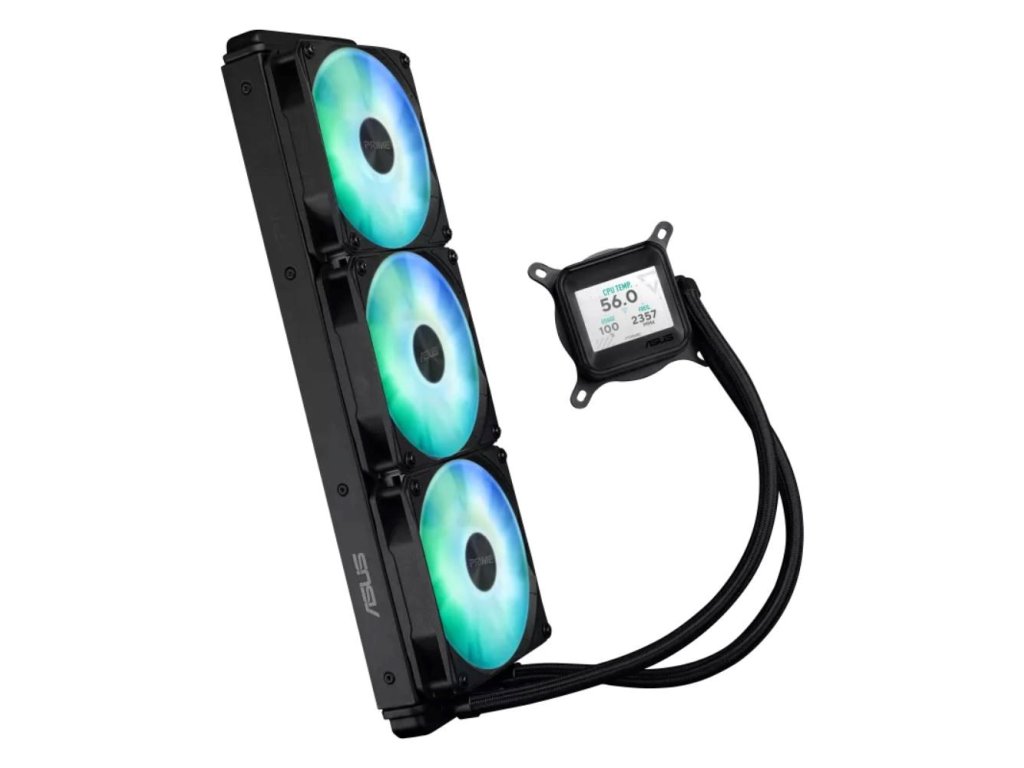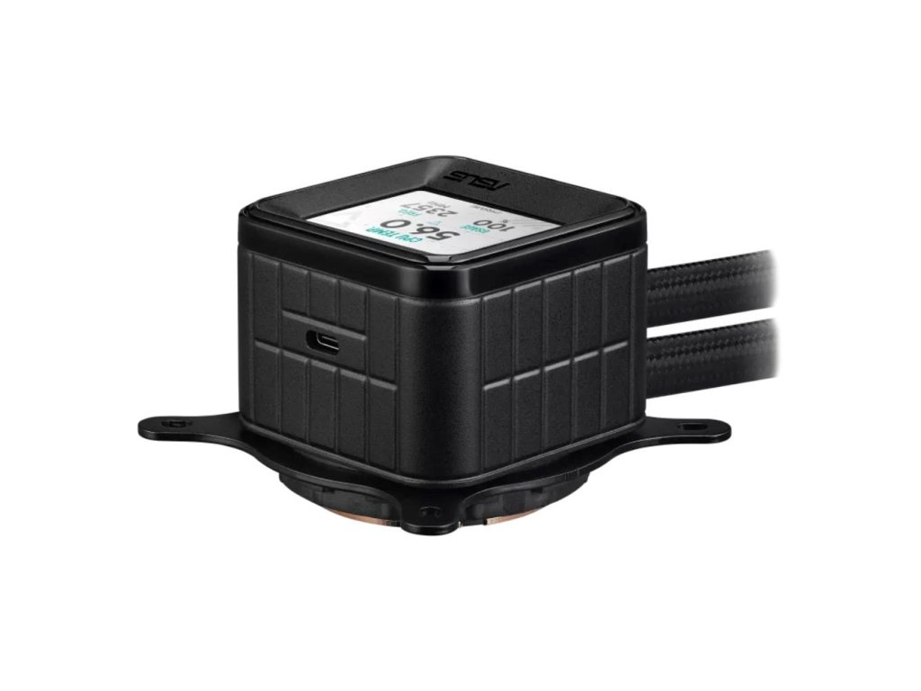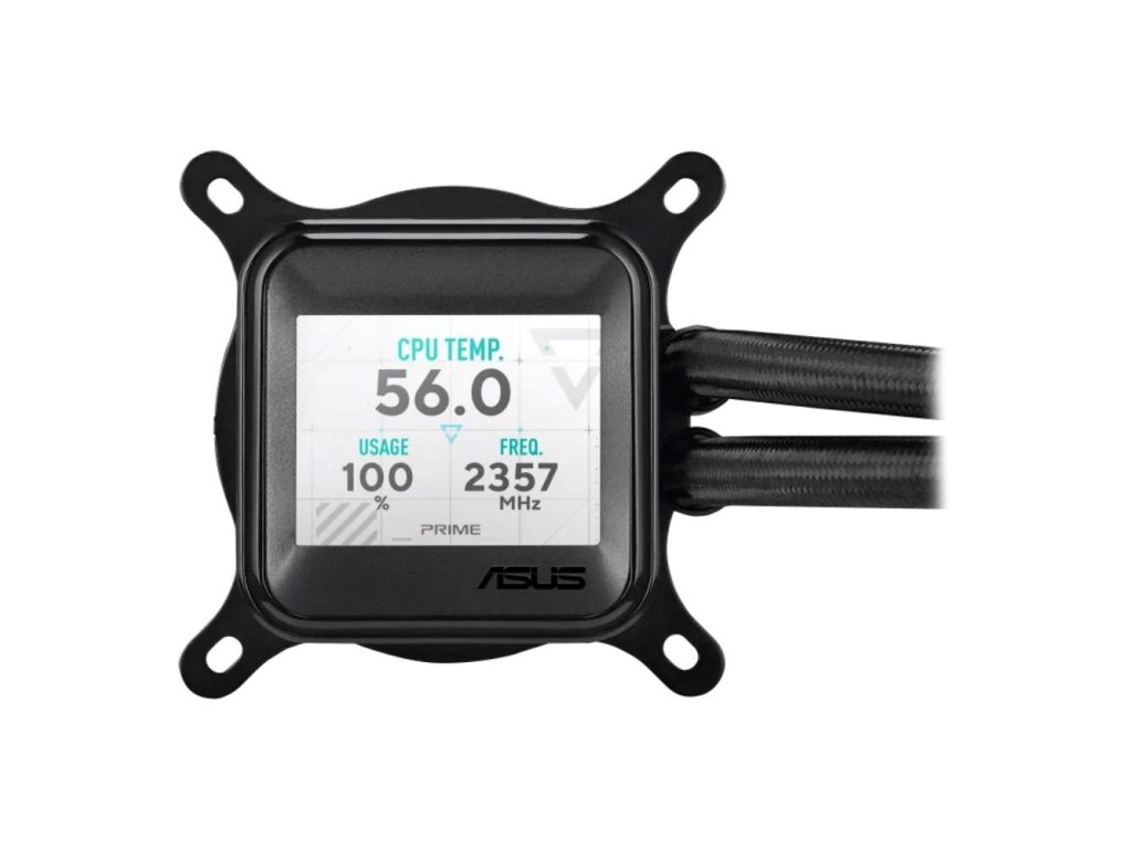 Všetko-v-1 vodný chladič procesora ASUS Prime LC ARGB LCD s ostrým displejom zobrazujúcim informácie o procese a grafickej karte s rôznym pozadím, vysoko výkonným čerpadlom Asetek vybaveným robustným motorom a ventilátormi s možnosťou reťazenia.